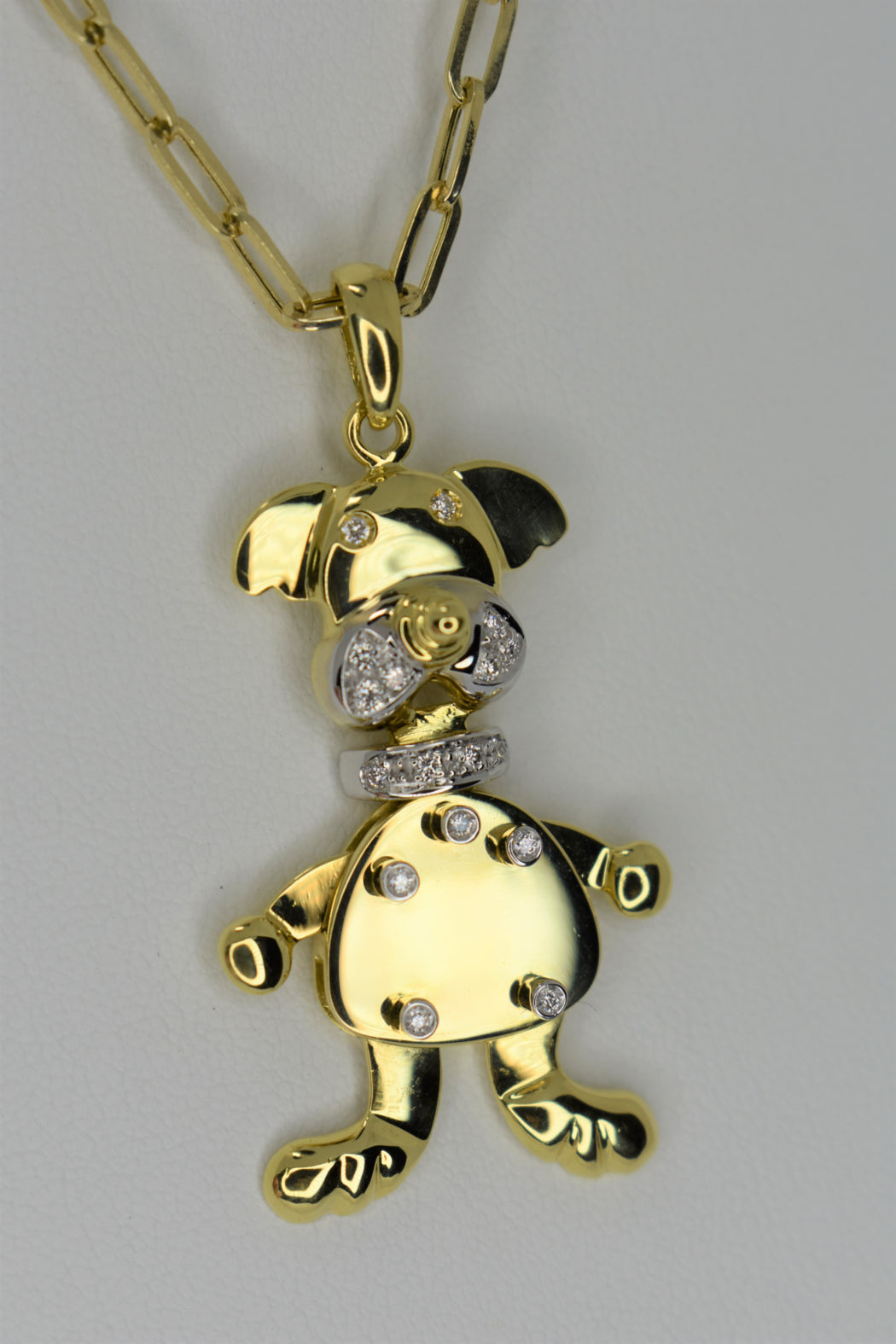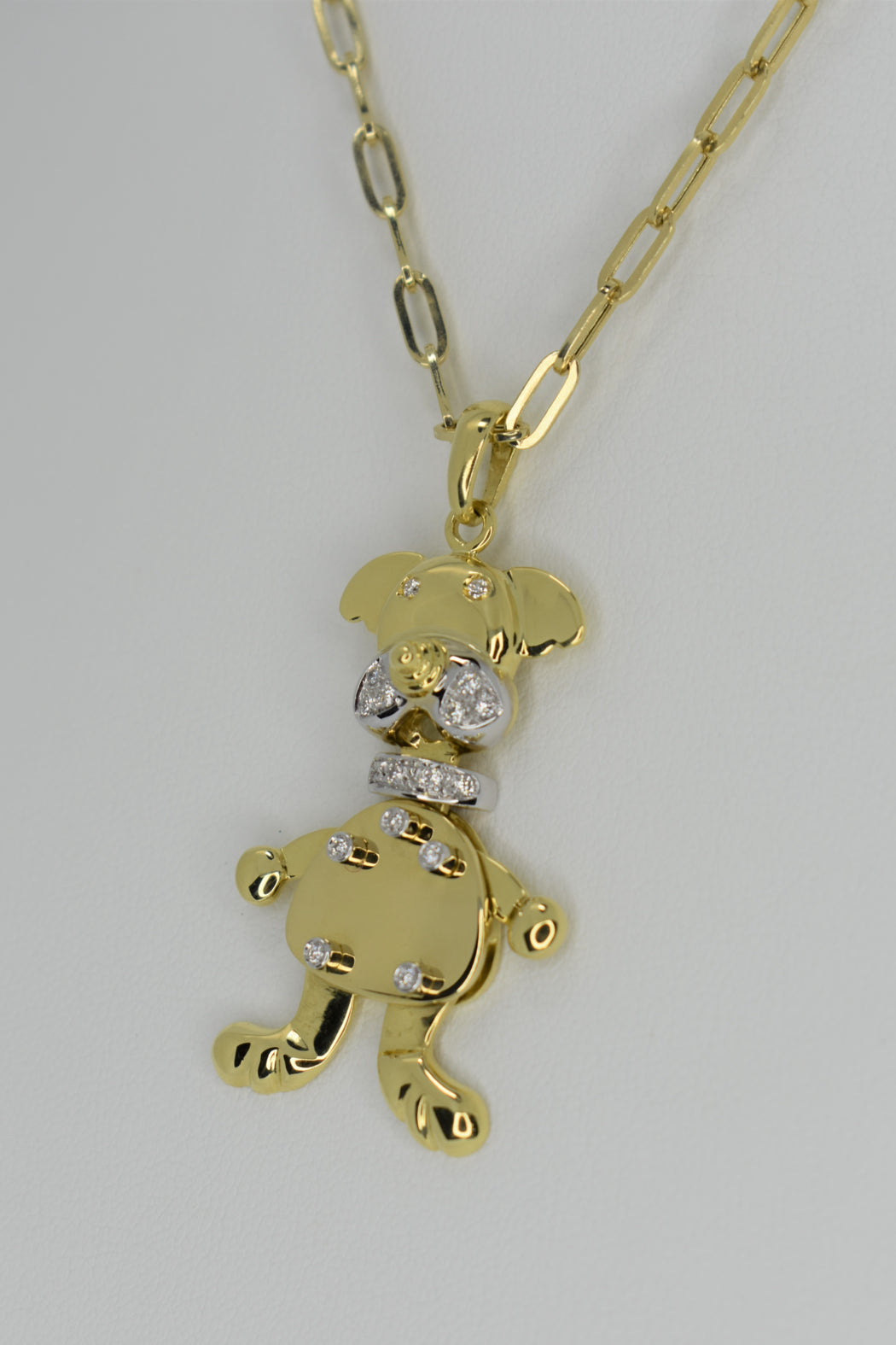 18kt Yellow Gold Diamond (.15cttw) Moveable Dog Pendant. Chain is for display purposes only & can be purchased separately.