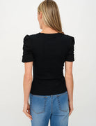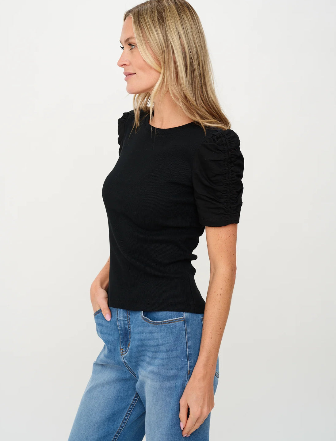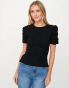 Six Fifty Alexandria Ribbed Ruched Sleeve Top Black