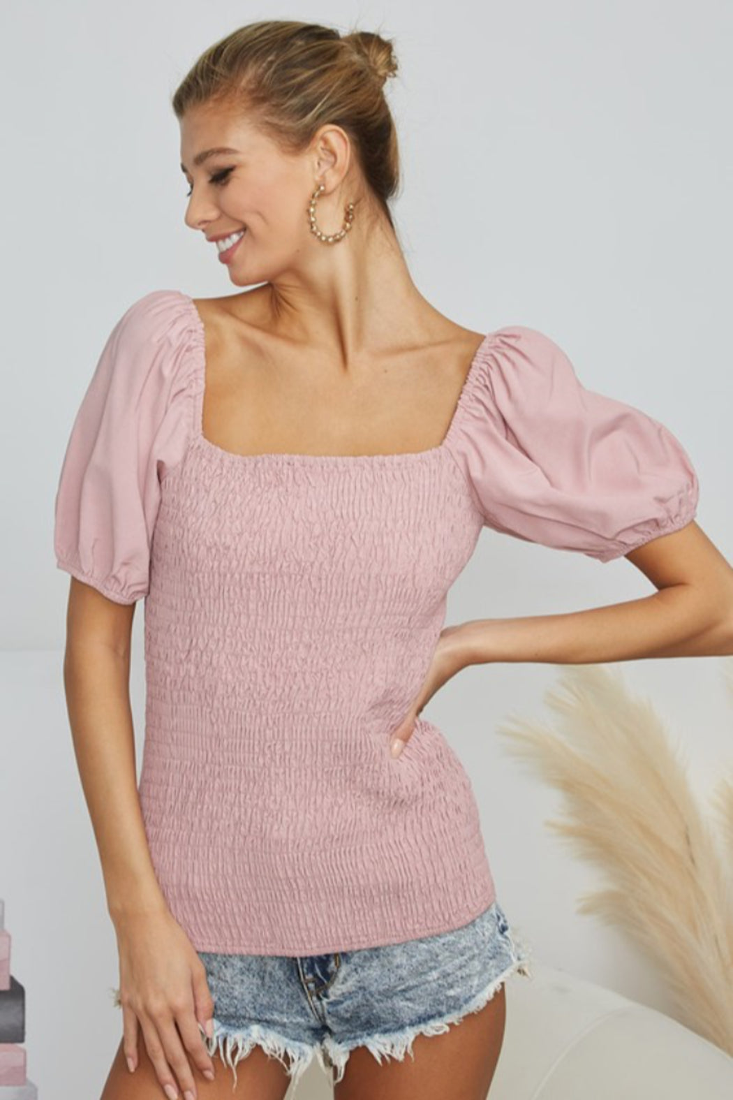 Balloon Sleeve Smocked Body Top