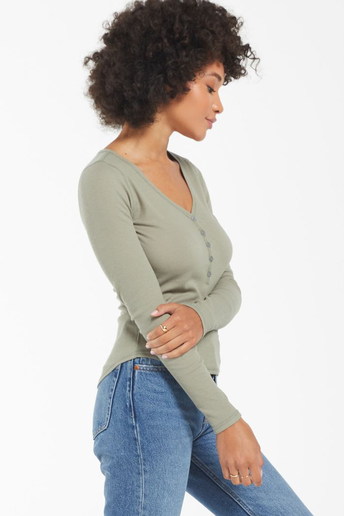 Our take on the classic Henley. The Blaine Rib Long Sleeve is made in our feather rib cotton/spandex blend that allows you to move, even in a slightly fitted body. It’s the perfect base layer! With button closures down the neckline, soft ribbed fabrication, and long sleeves, this will be your new go-to item. Fabric Content: 95% Rayon 5% Spandex