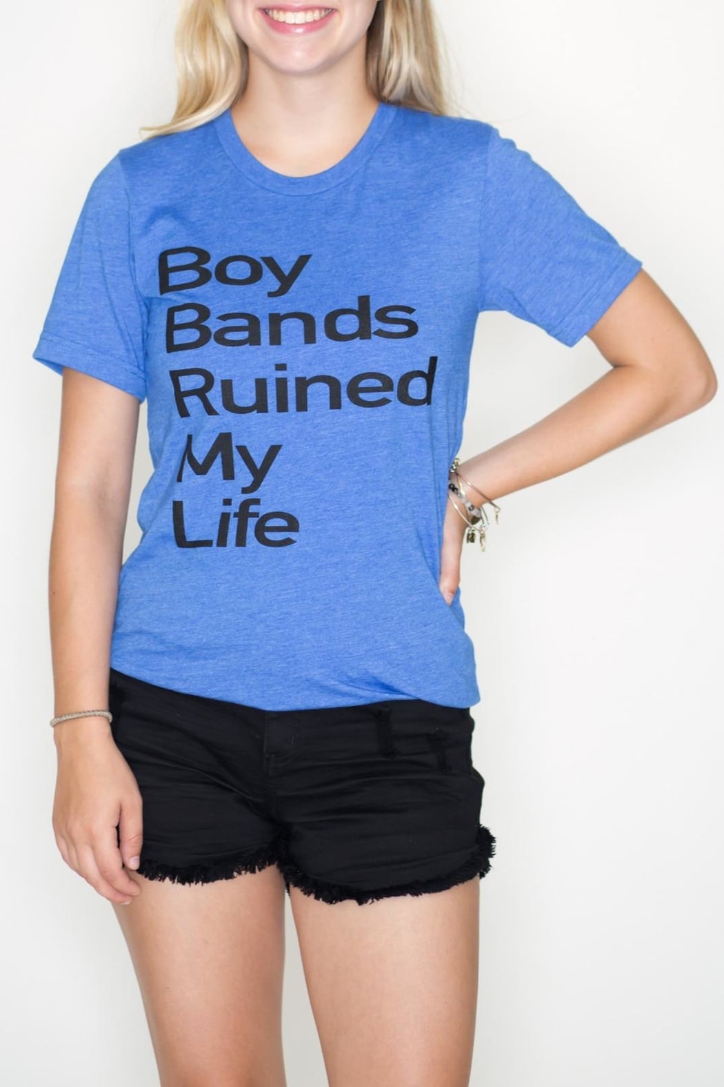 Boy Bands Ruined My Life short sleeve tee. Super soft royal blue. Unisex sizing.