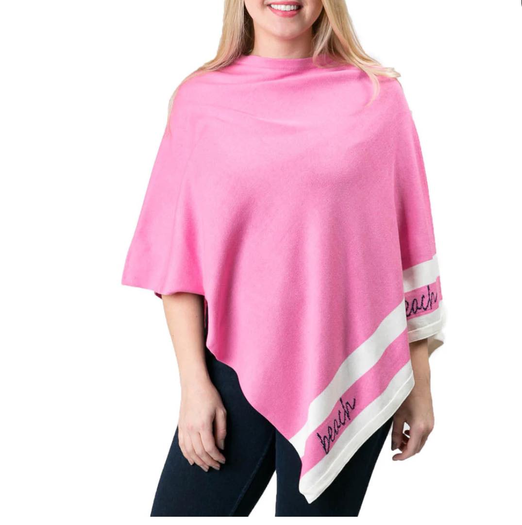 You won't believe the variety of amazing looks you can create with just this and a few other basics. Show off your style with the "beach" word knitted into the poncho, which goes from the front to the back. Wear it with jeans or leggings for a timeless casual look or bring it to the beach for a cool summer evening. Its pullover style makes it an effortless way to style.