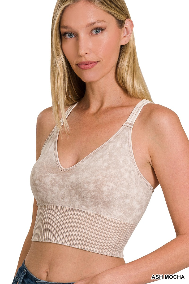 WASHED CRISSCROSS STRAP BACK V-NECK CROPPED TANK TOP