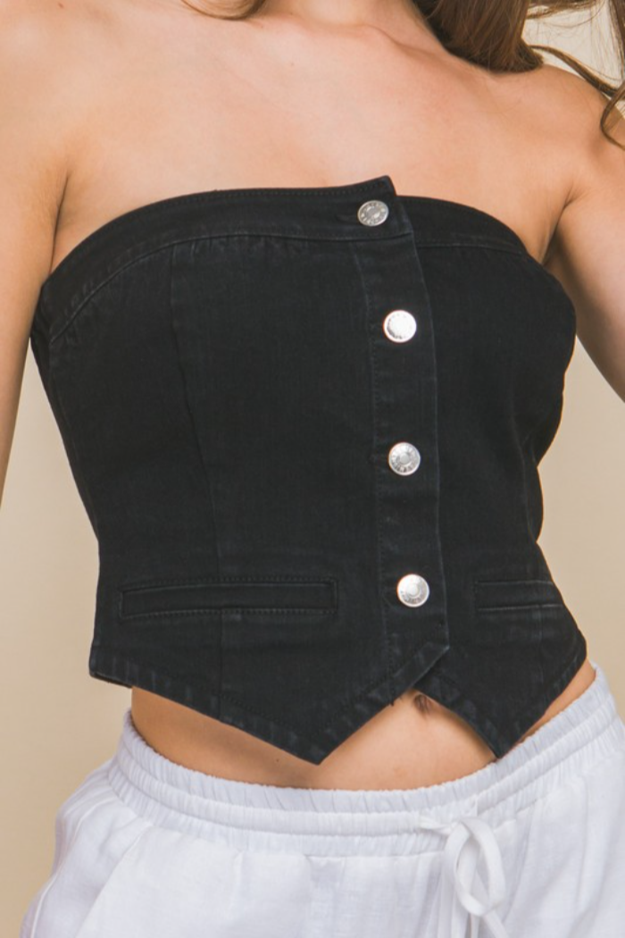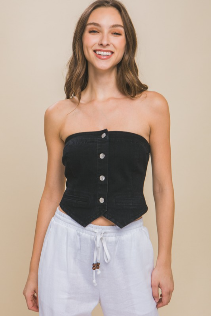 Denim Strapless Button-Up Crop Top cute for country concerts Nashville