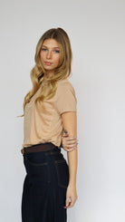 Elevate your everyday basics with the Vegan Suede Tee Shirt — a modern twist on a classic silhouette. Crafted from ultra-soft vegan suede, this tee delivers a luxe feel with effortless comfort. The buttery texture and subtle sheen give it a polished finish, while the relaxed fit keeps it easy and wearable from day to night.