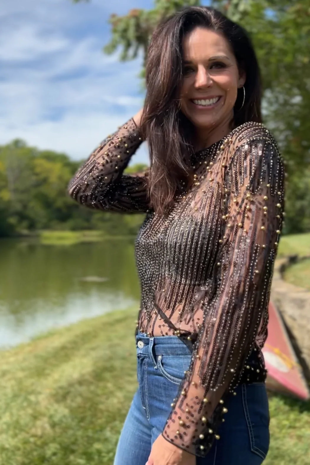 Ellyndale Beaded Embroidered Mesh Blouse