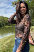 Beads&sequin embroidered on mesh long sleeve blouse (Black/Gold)