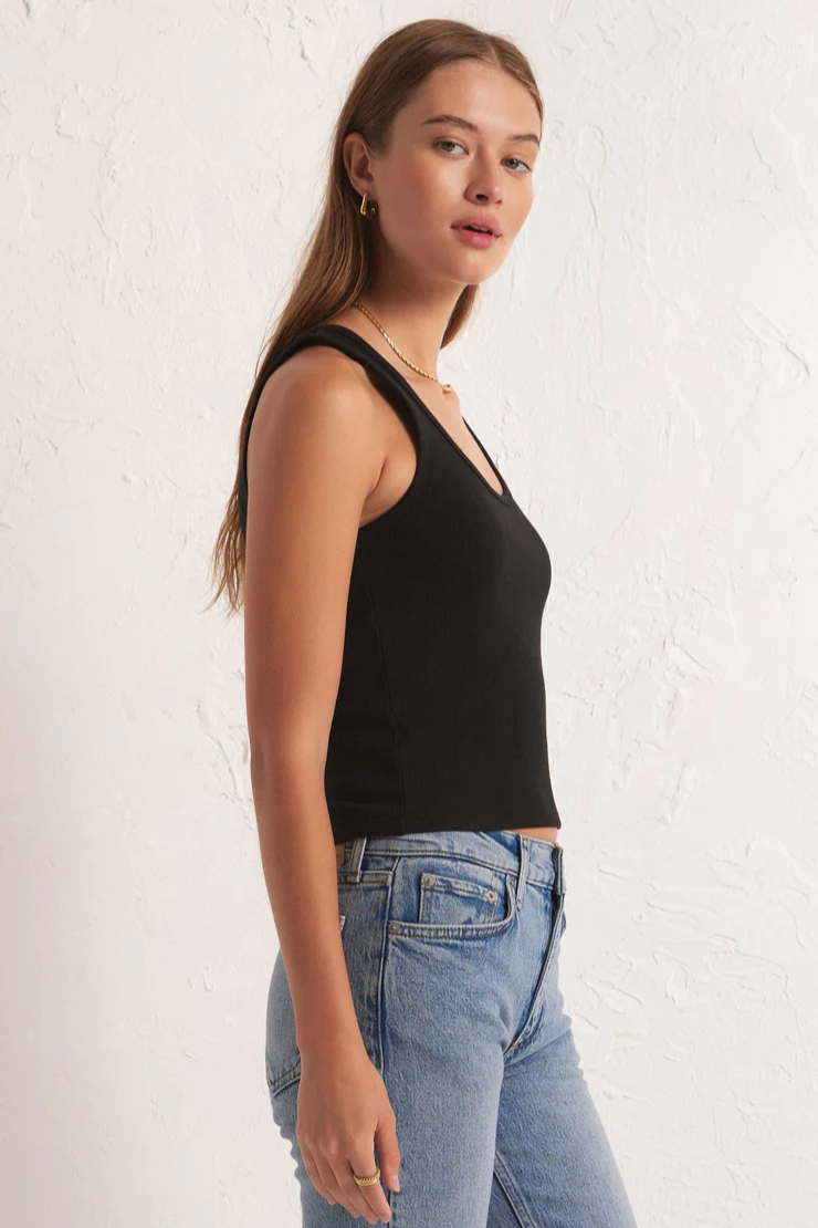 Say hello to your new staple tank. The Essy Rib Top is easy to layer and is one of those bra-friendly basics you can wear all season.