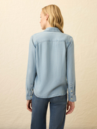 Lightweight meets legendary in this reimagined chambray essential. We've blended TENCEL™ Lyocell with linen to create a shirt that's impossibly soft and breathable—think classic workwear charm without the stiffness. The relaxed fit and 26½" length hit just right, while double chest pockets, a shirttail hem with side gussets, and a back yoke with subtle pleats keep things authentically cool. Perfect for layering, tucking, or throwing on solo, this is the casual-cool staple that actually feels as good as it looks.