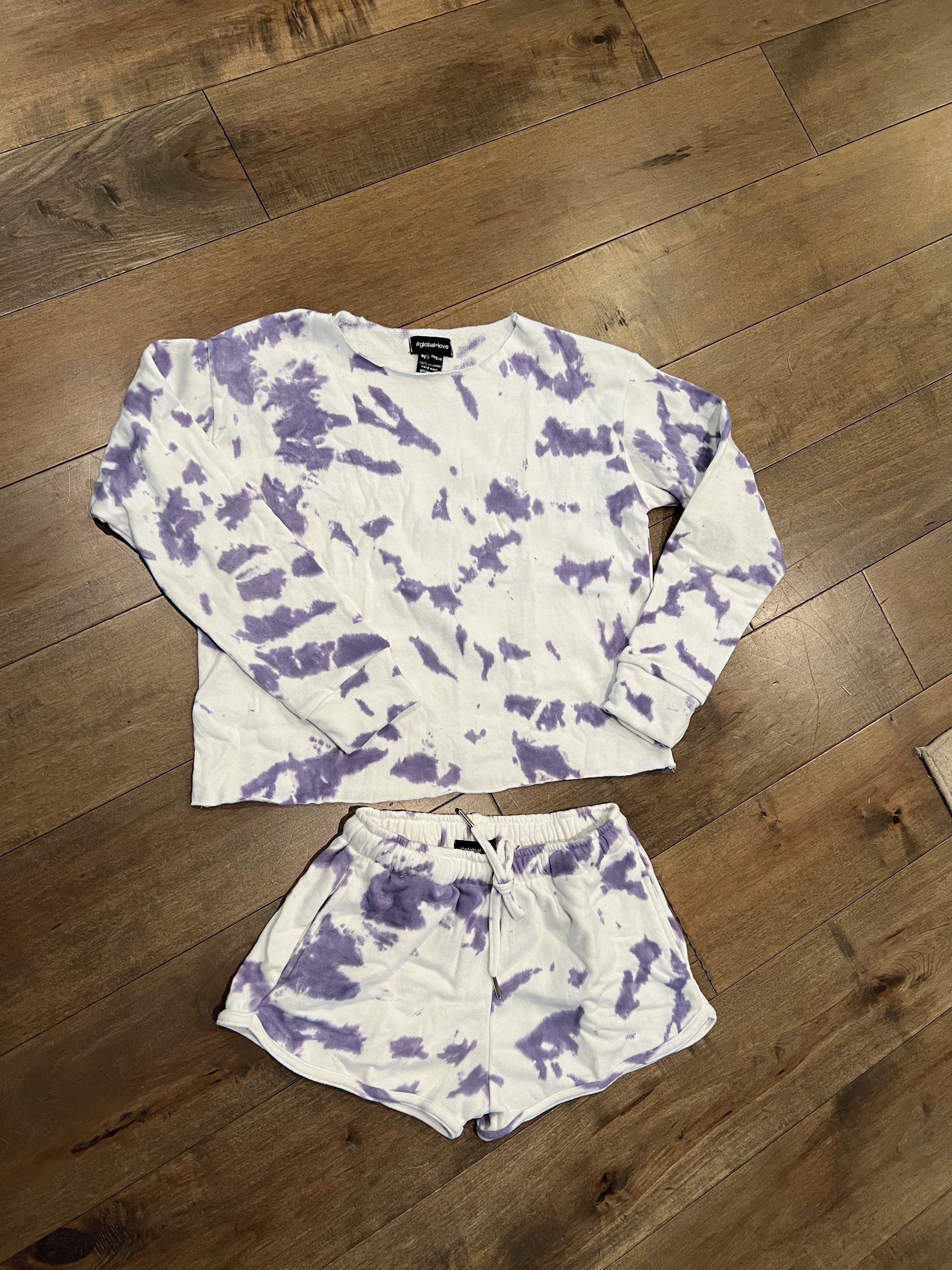 Flowers By Zoe Purple Tie Dye Sweatshirt & Short Set