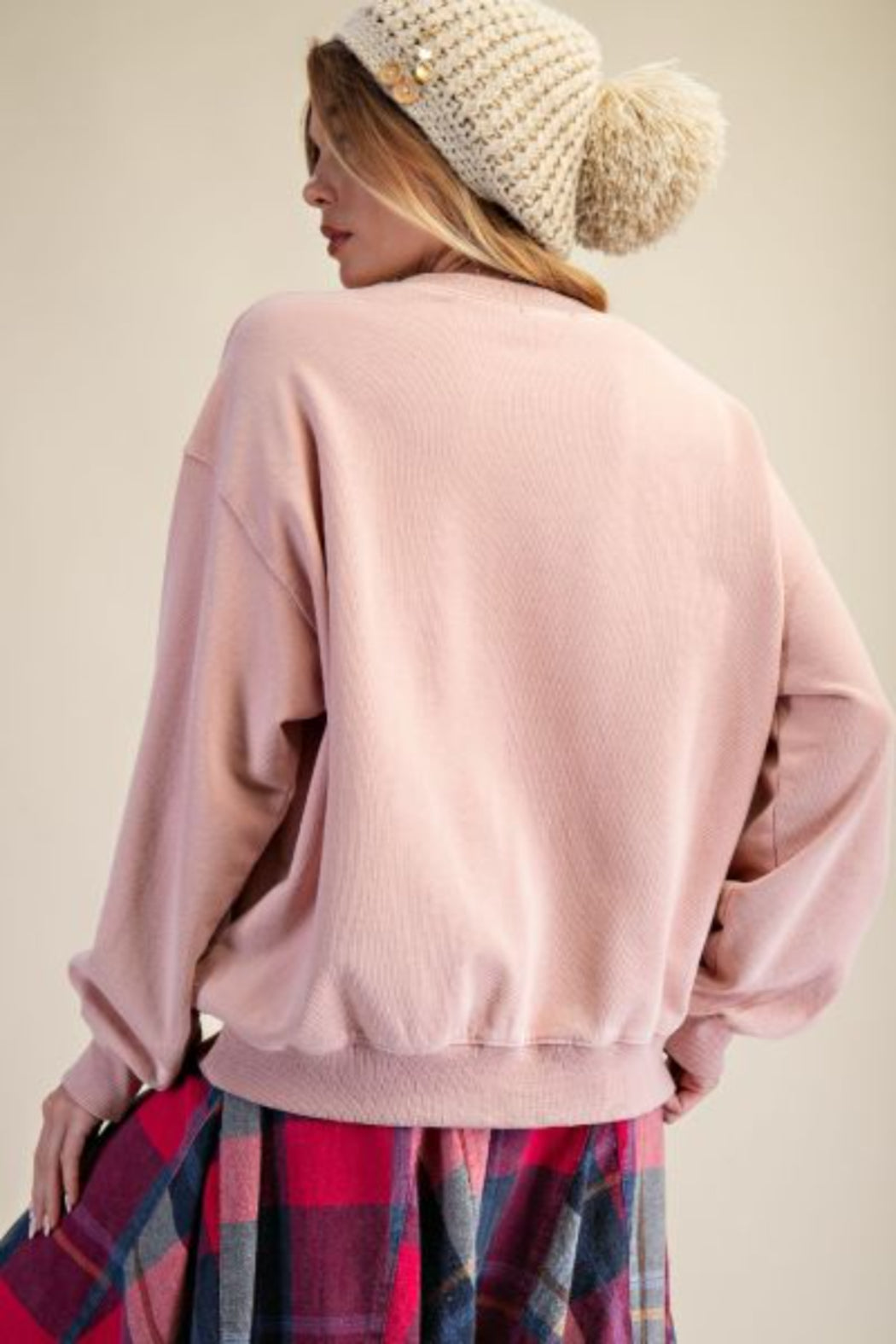HEART FUR DETAILING WASHED TERRY PULLOVER