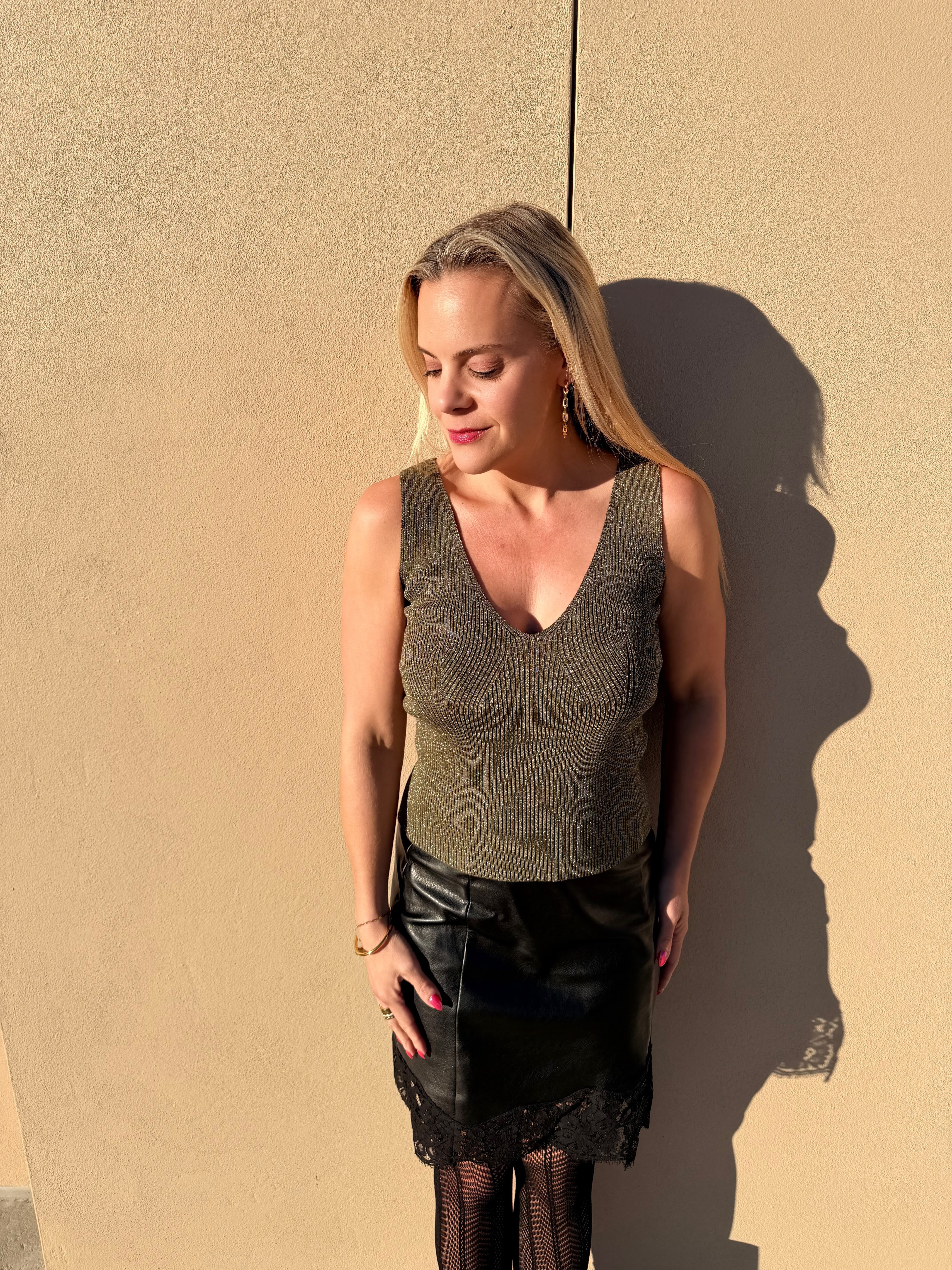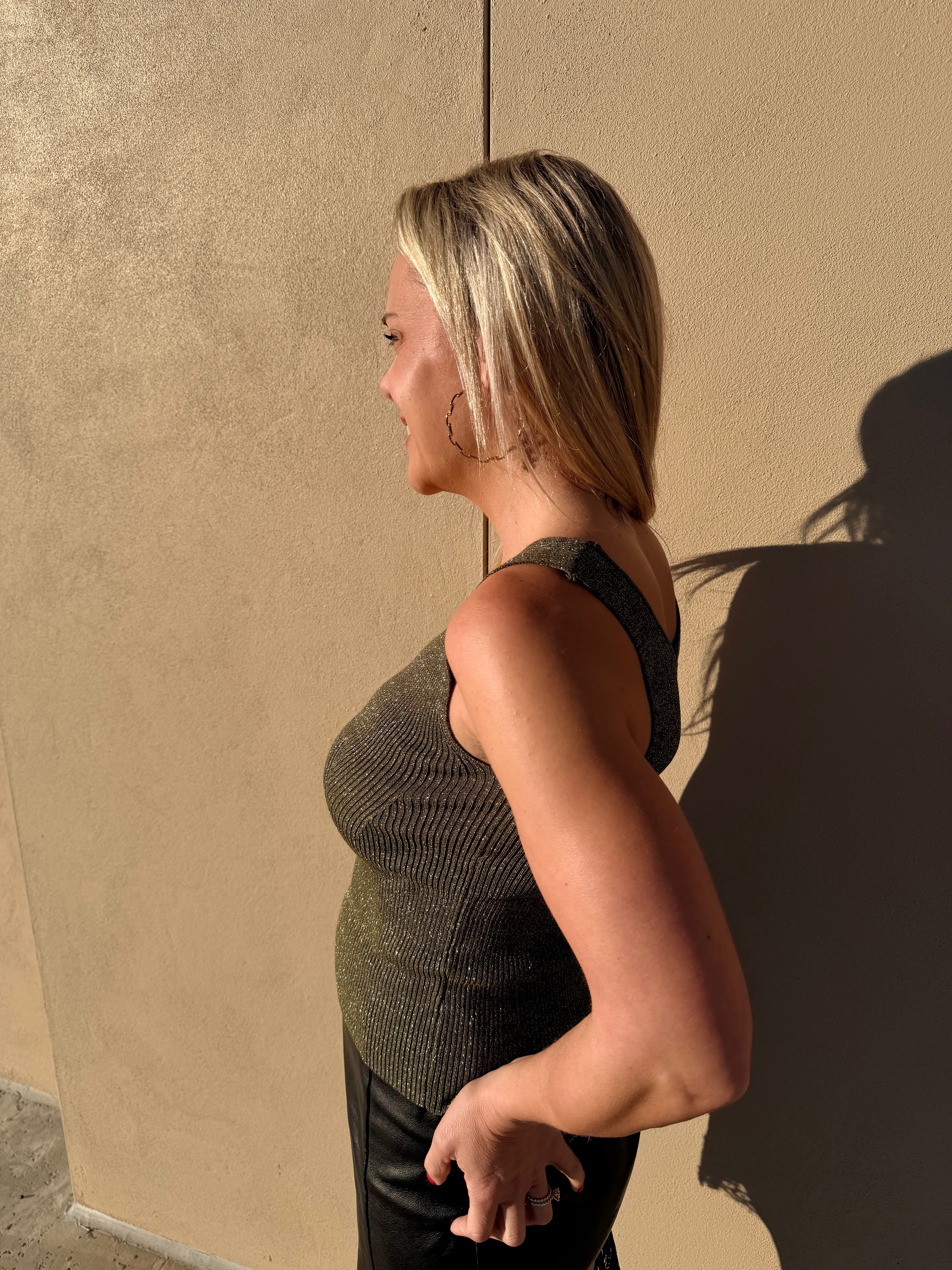 The Indra Top is a chic sleeveless top with a close fit and deep neckline. Its ribbed texture and soft, stretchy fabric make it comfortable for daily wear. Style it with jeans or skirts for a clean, polished look.