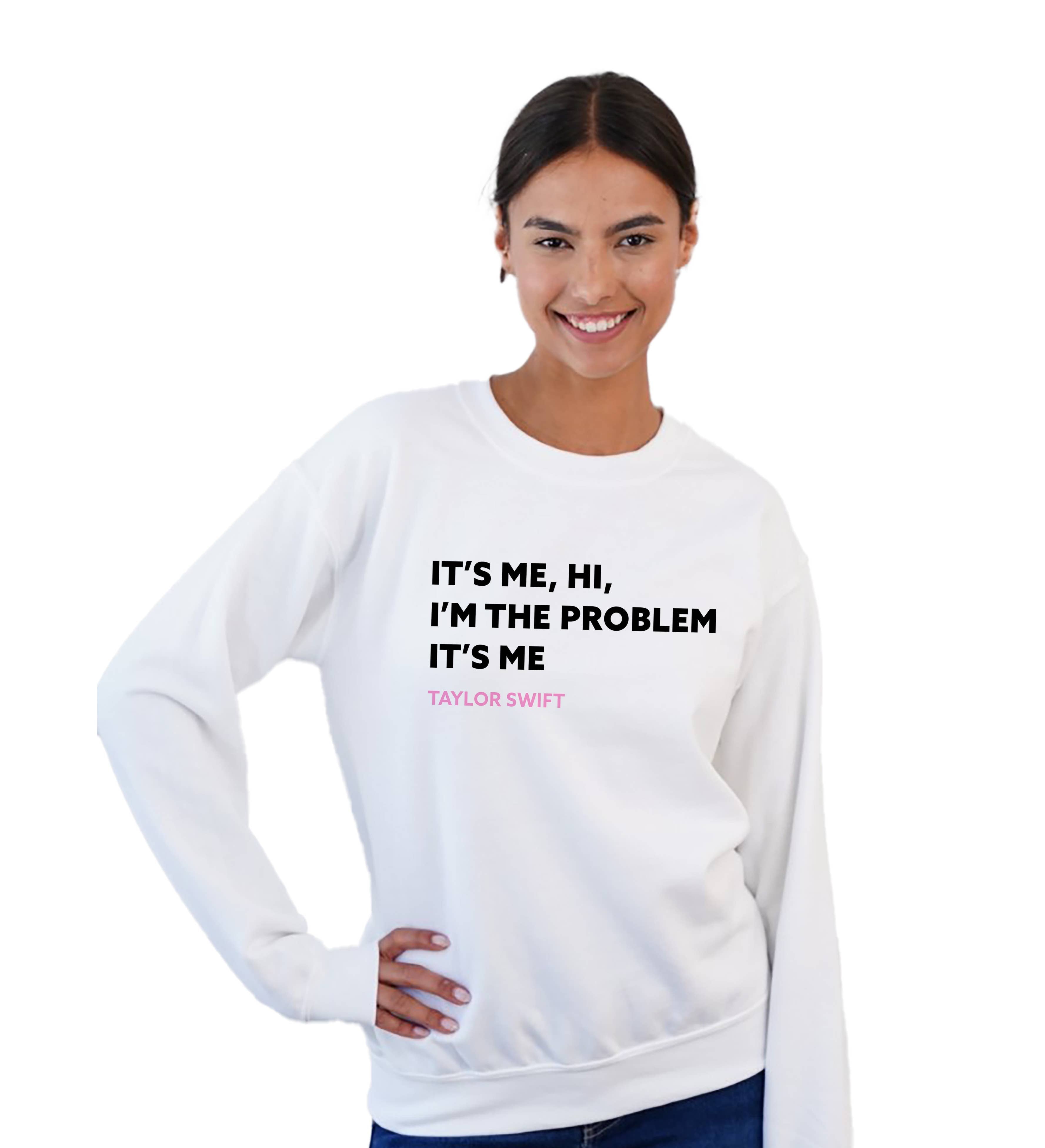 "It's me, Hi, I'm the problem, It's me." Taylor Swift Crew Neck Sweatshirt is a fun way to show your support for the iconic Taylor Swift.