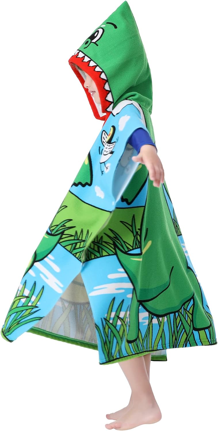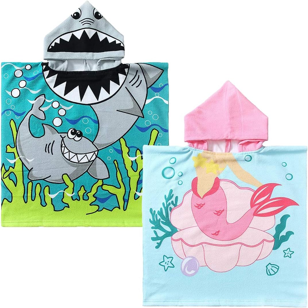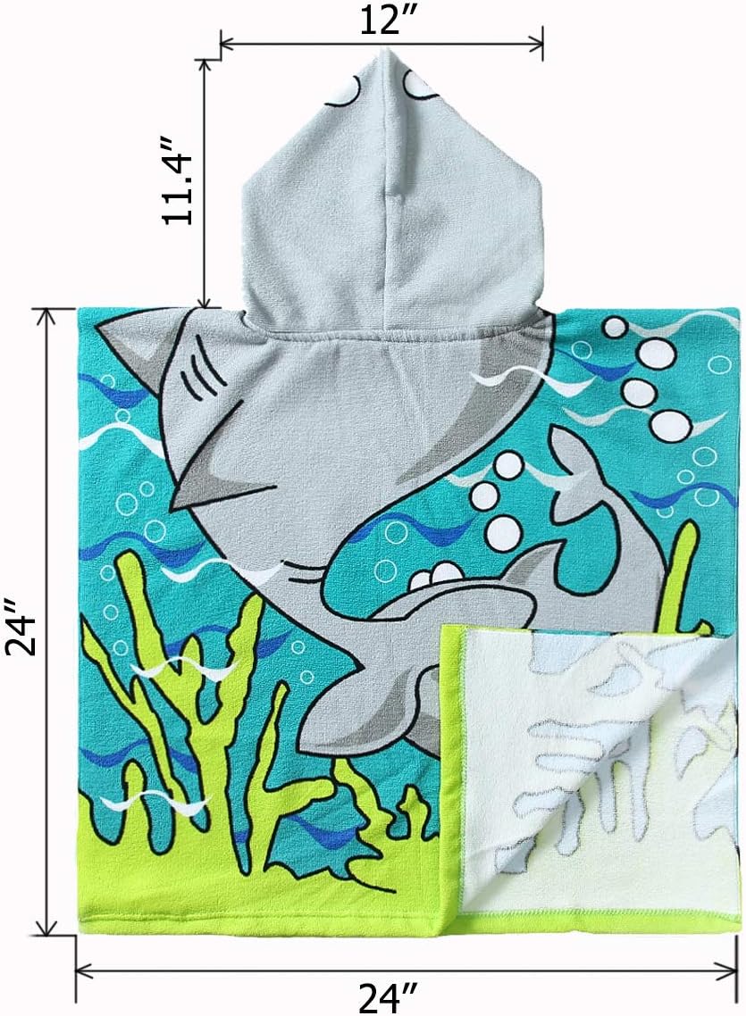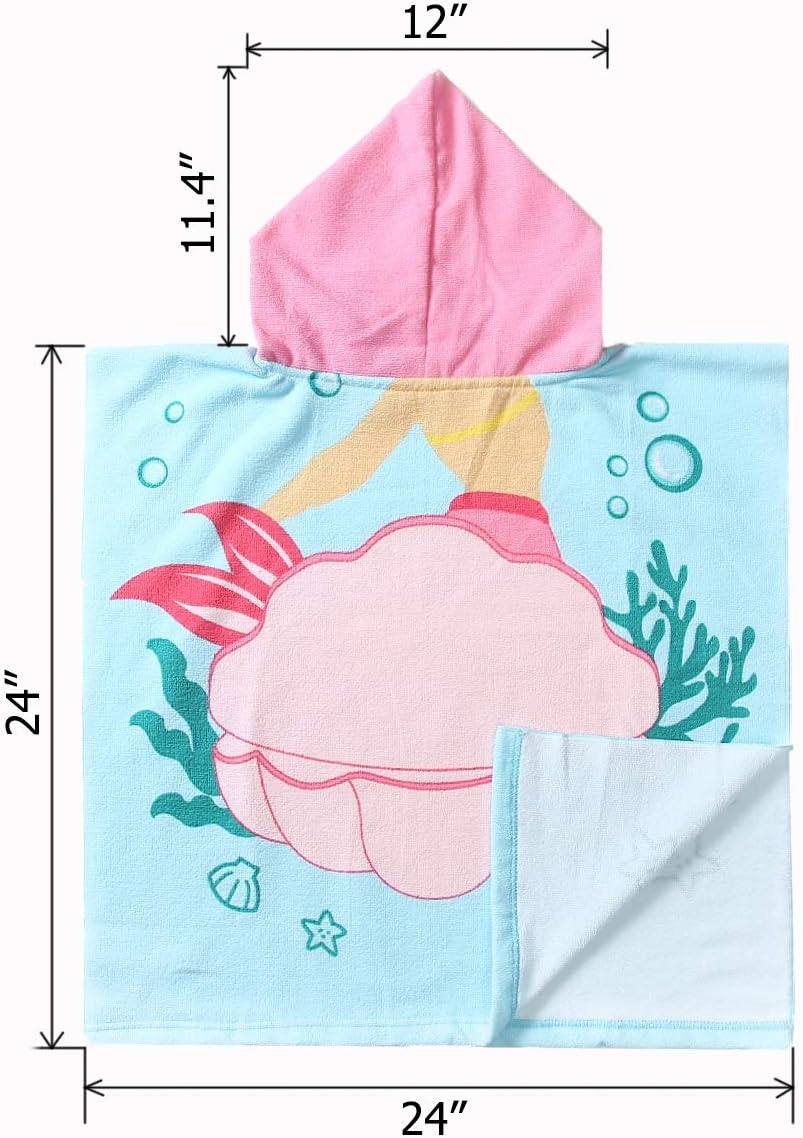 - DOUBLE SIZED: 29.5"x59" in full-length and 29.5"X29.5" in folded-size with a 9.5"(W)x14(H)" hood. The poncho towels are large enough for 3-8 years old growing toddlers and kids