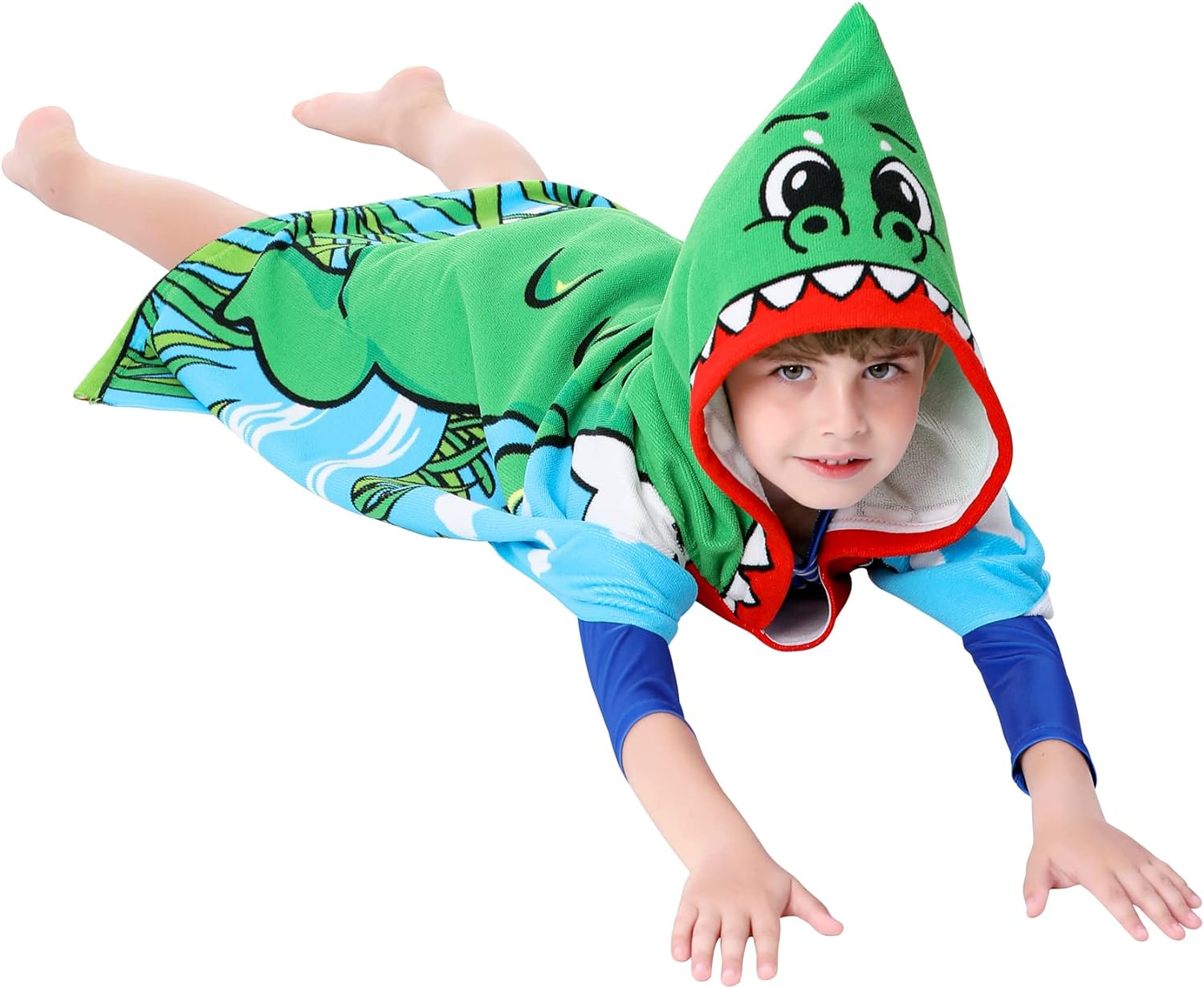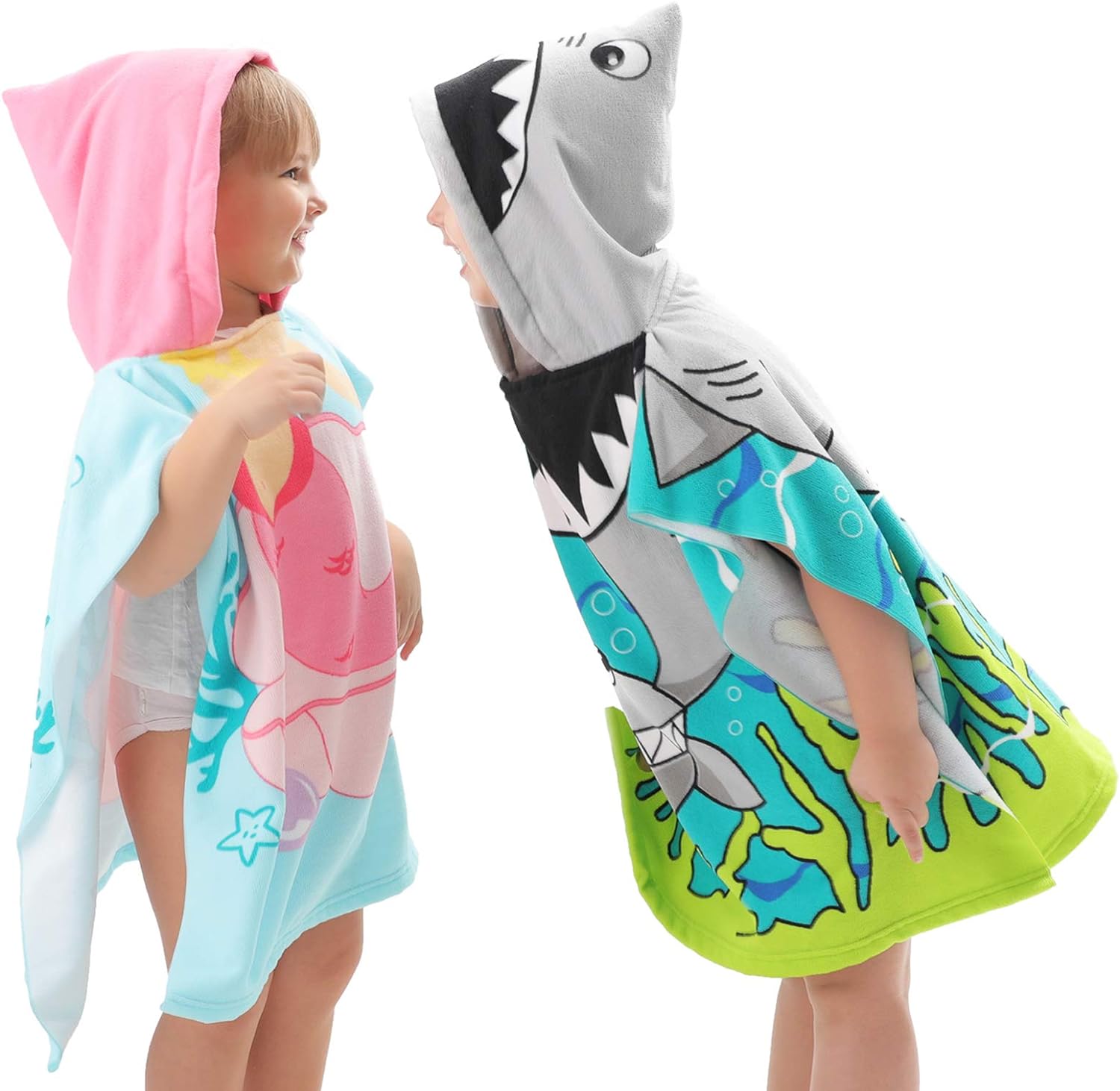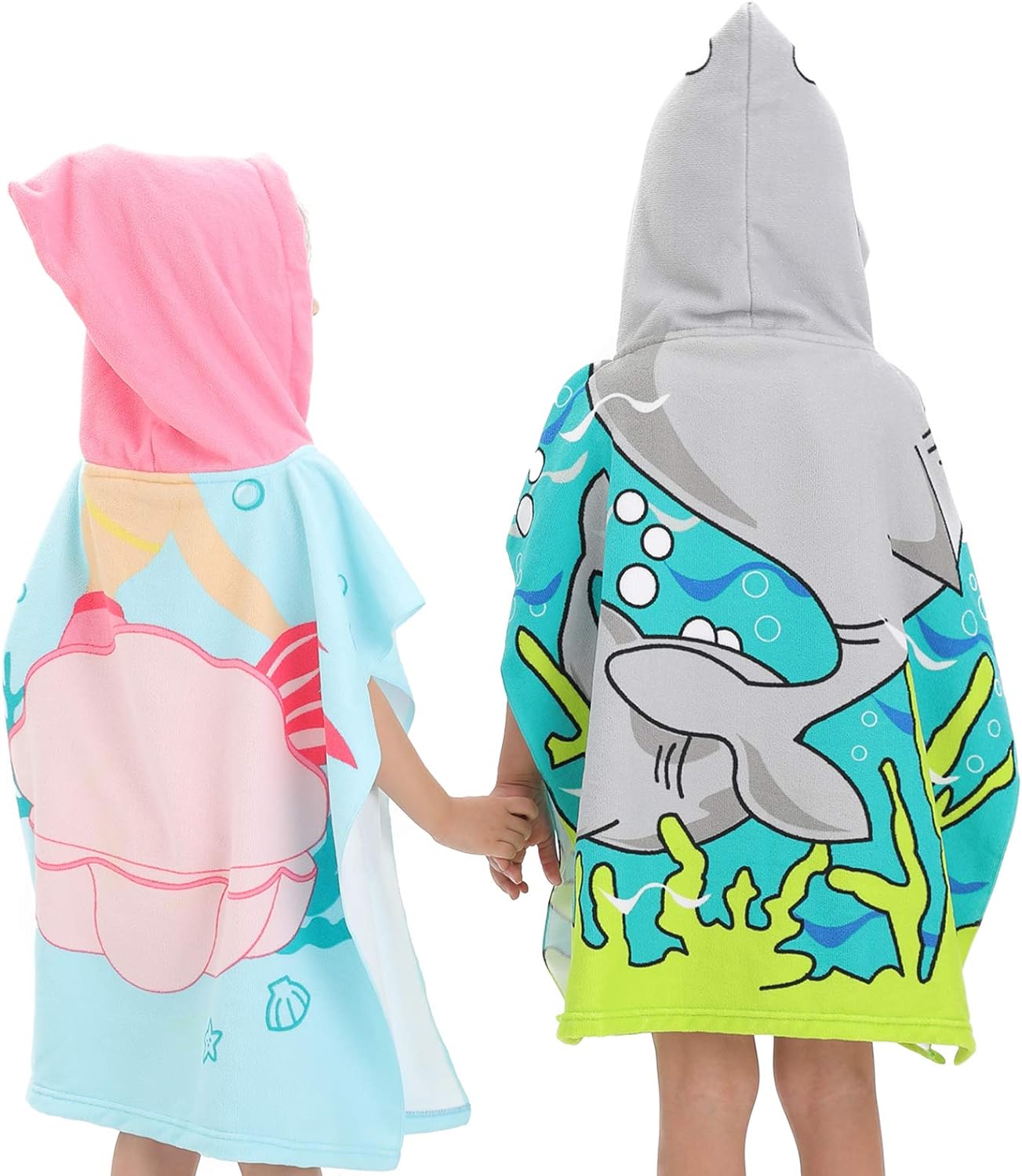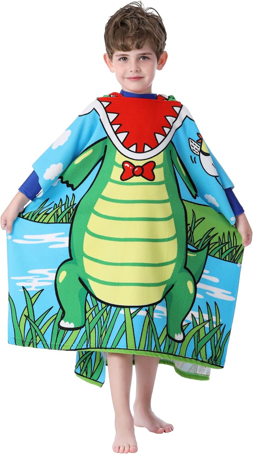 - DOUBLE SIZED: 29.5"x59" in full-length and 29.5"X29.5" in folded-size with a 9.5"(W)x14(H)" hood. The poncho towels are large enough for 3-8 years old growing toddlers and kids