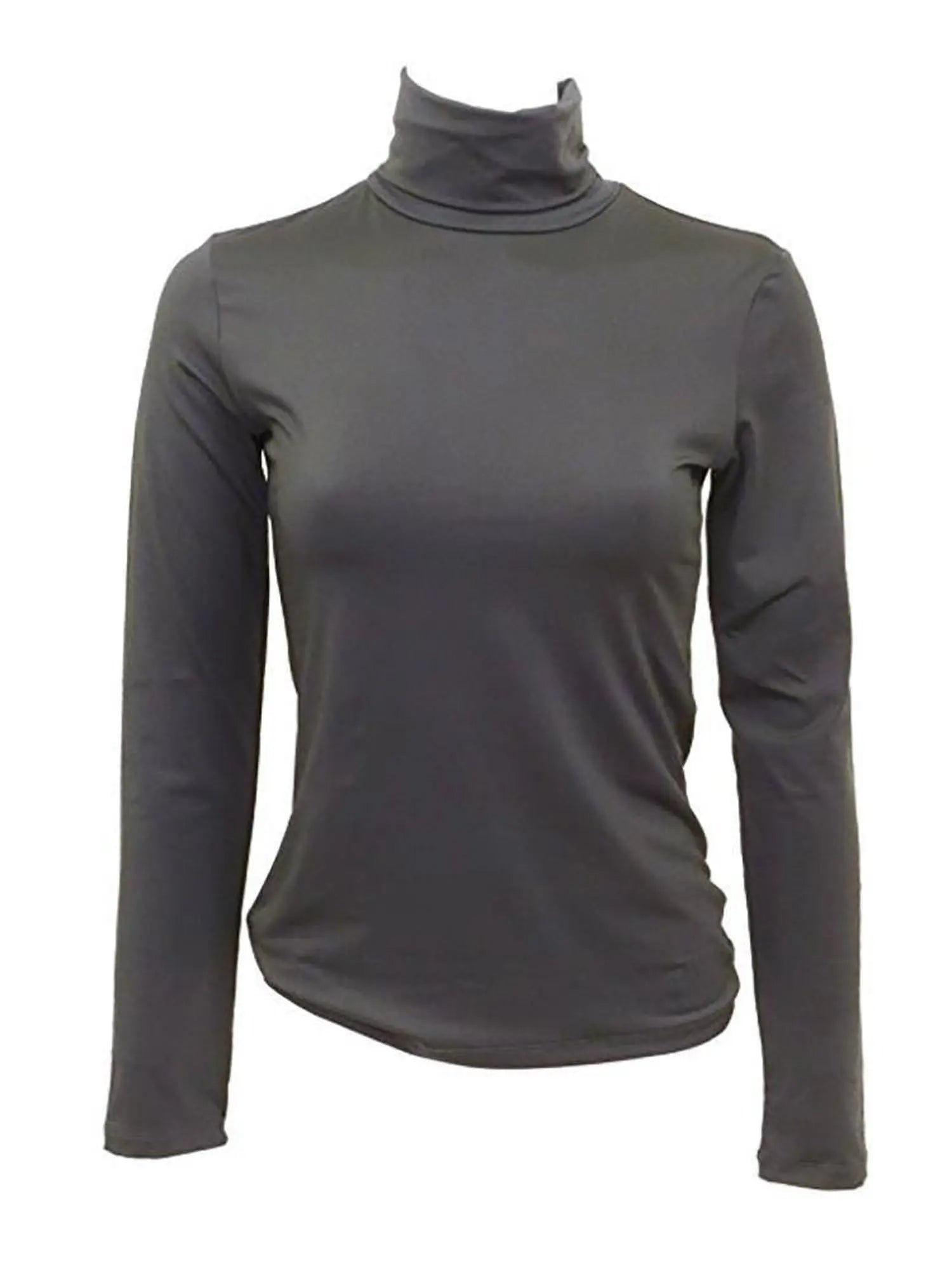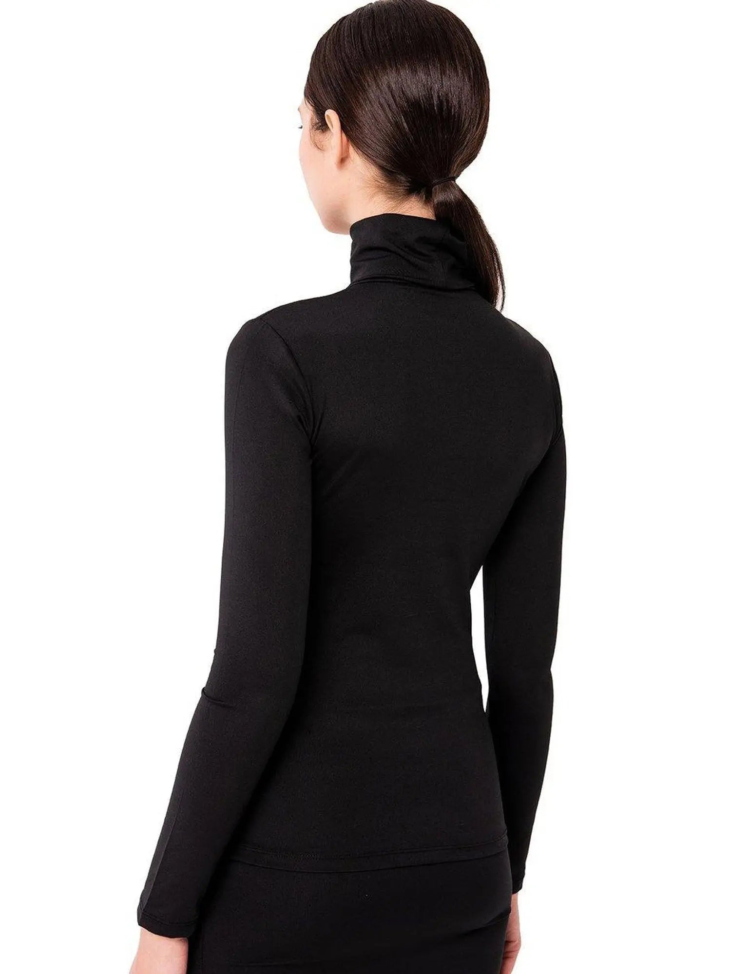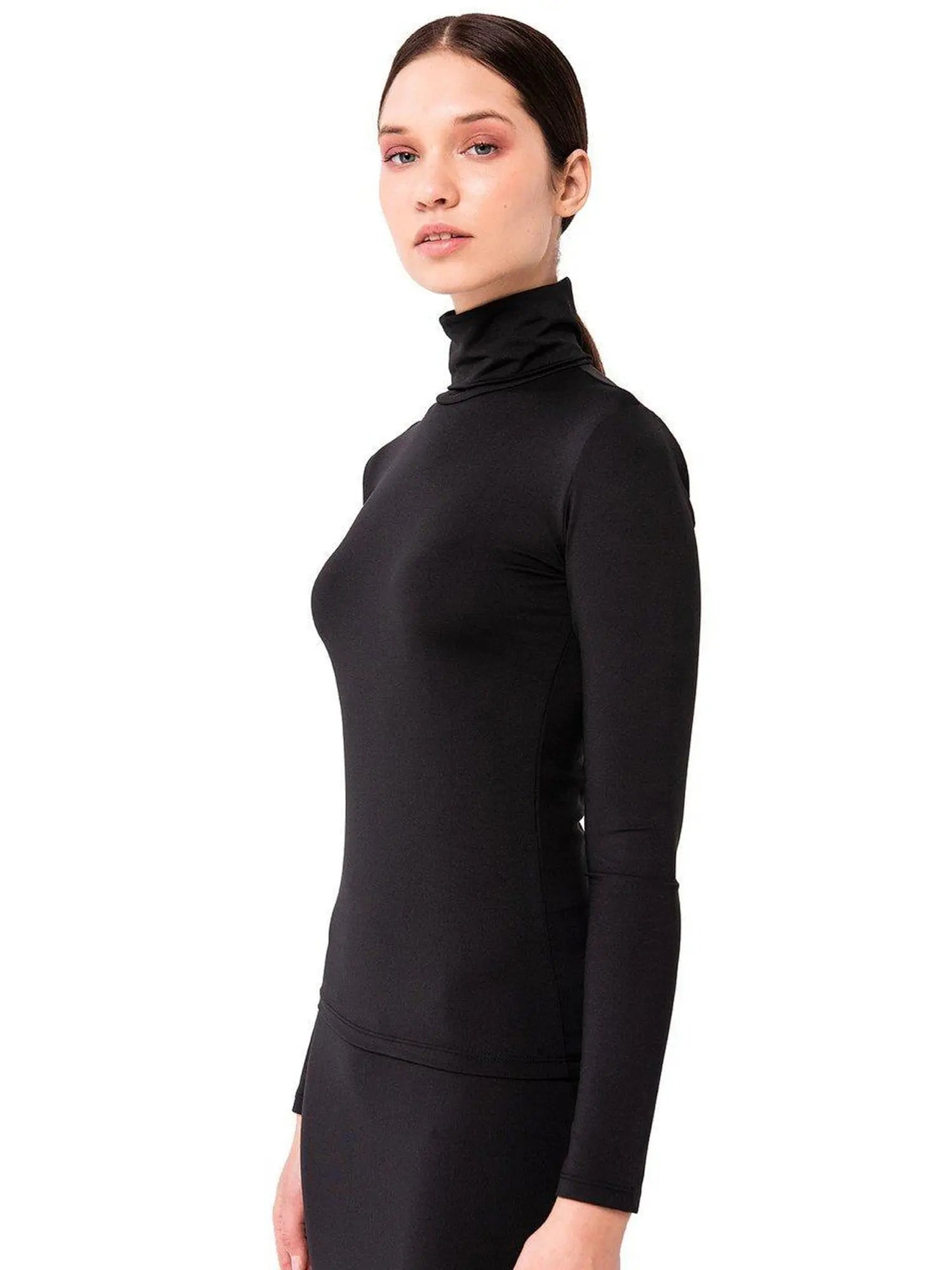 Fitted nylon stretch turtleneck, runs small in sizing.