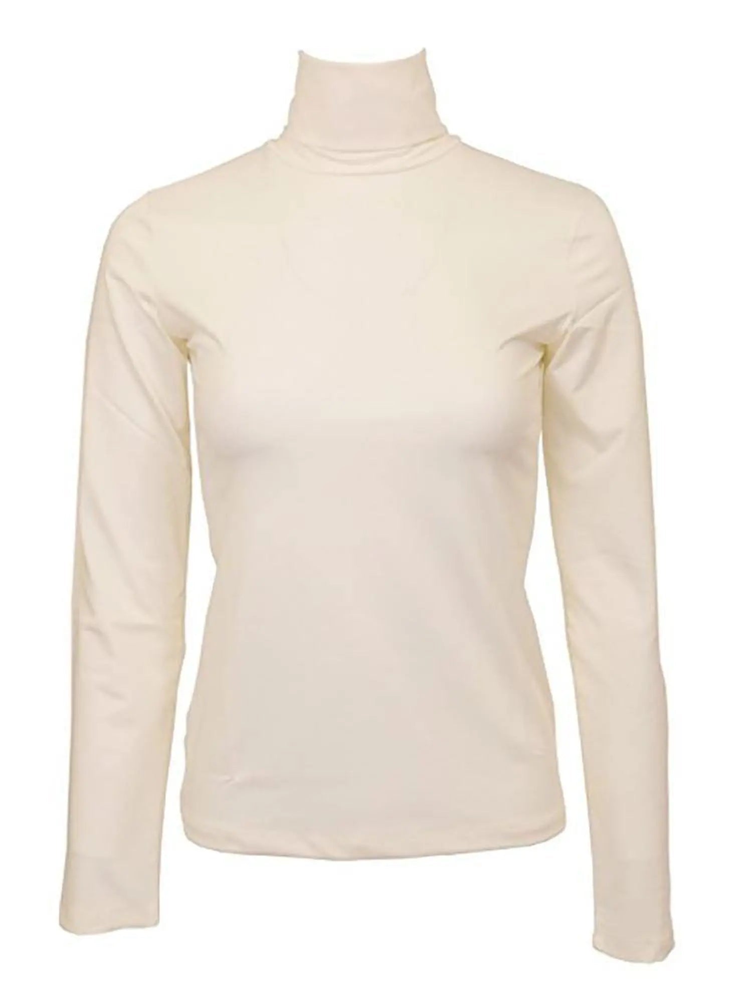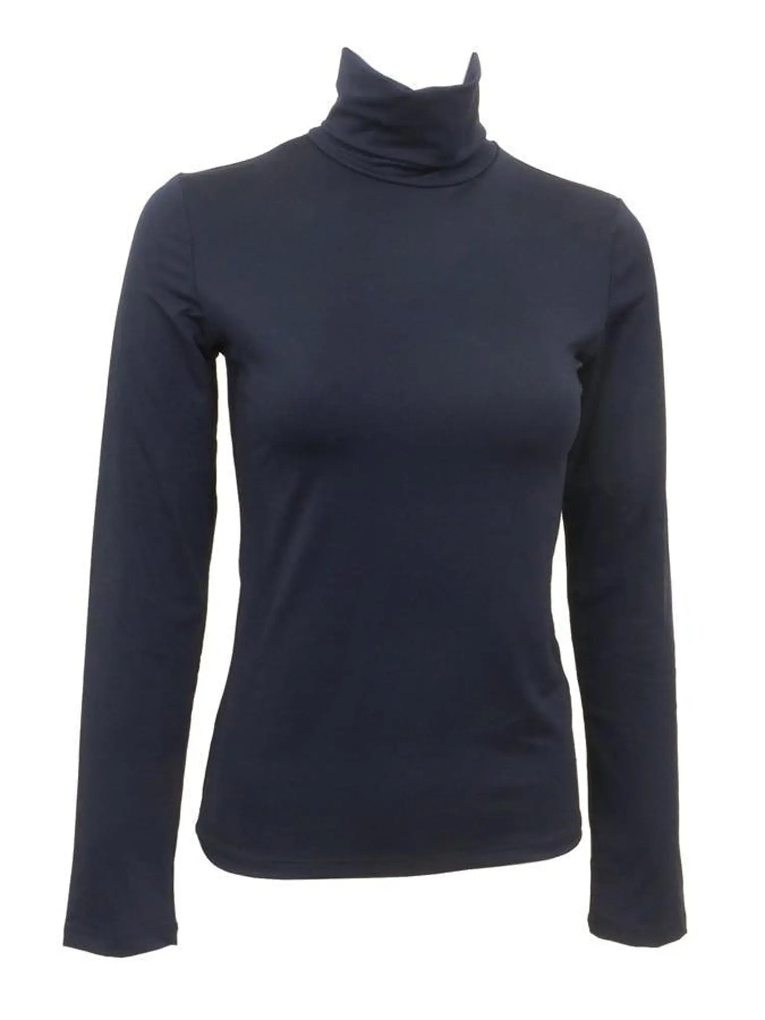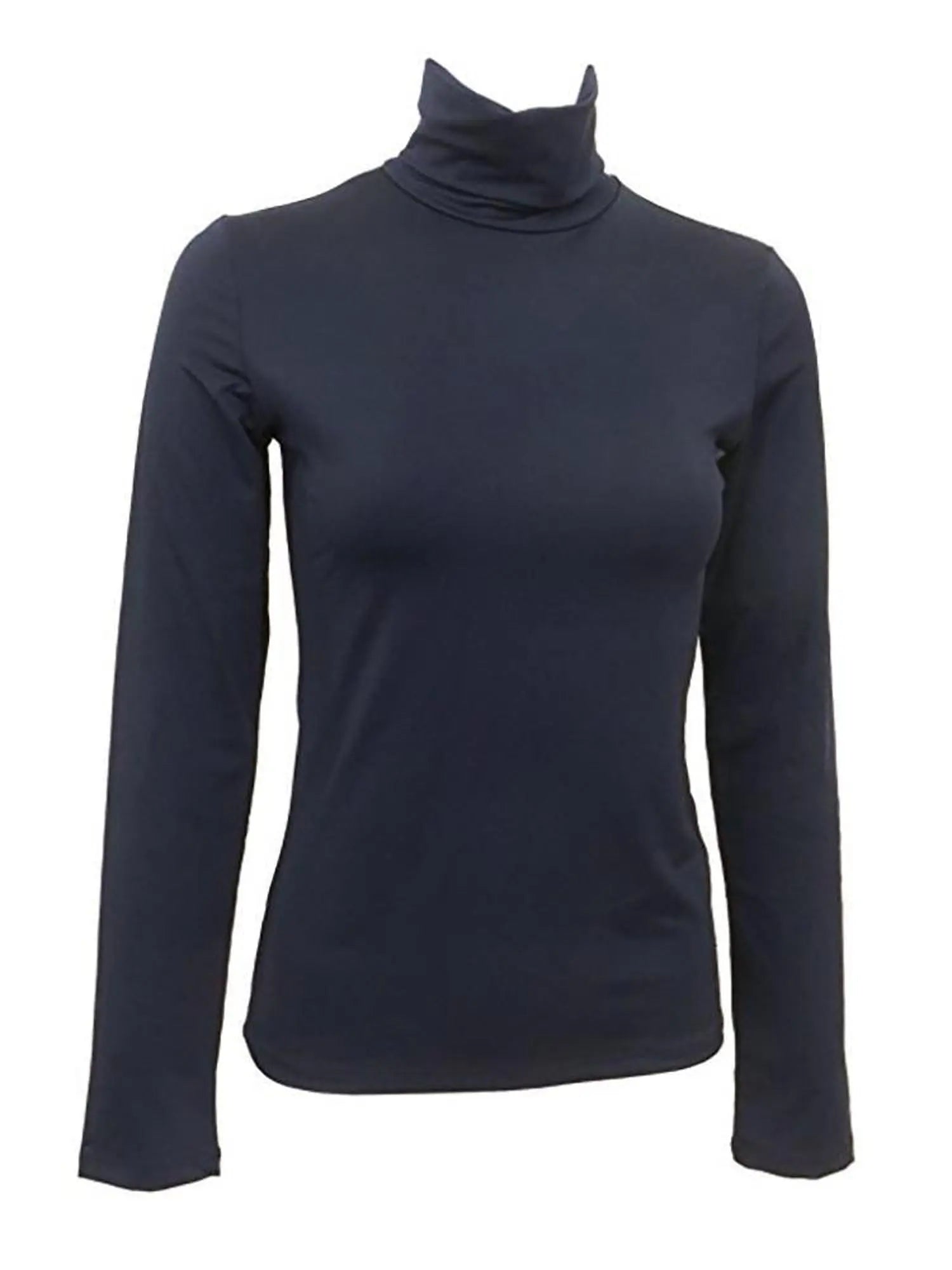 Fitted nylon stretch turtleneck, runs small in sizing.