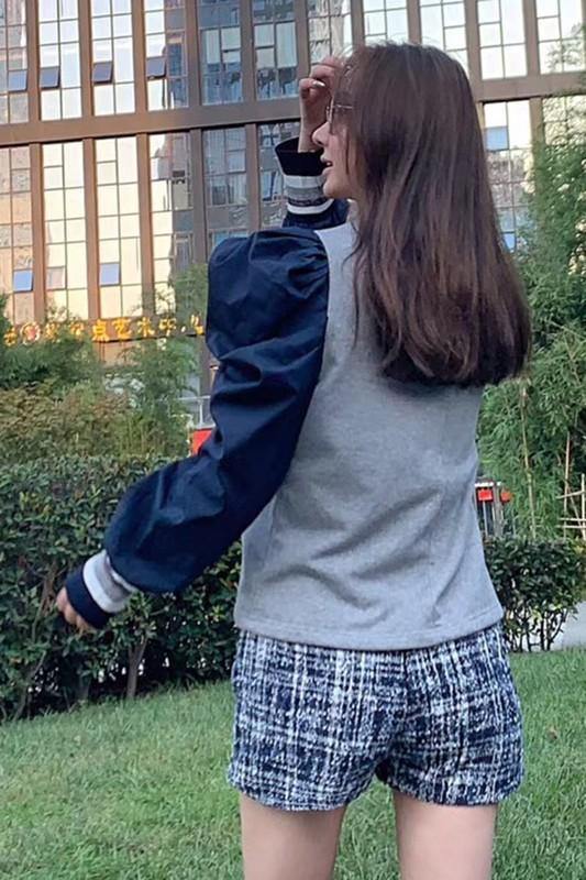 We love the bubble sleeve look this season. This color block top features a firm polished cotton bubble sleeve with ribbed stripe cuff and crewneck. Turn on the charm, its a must have for your closet.