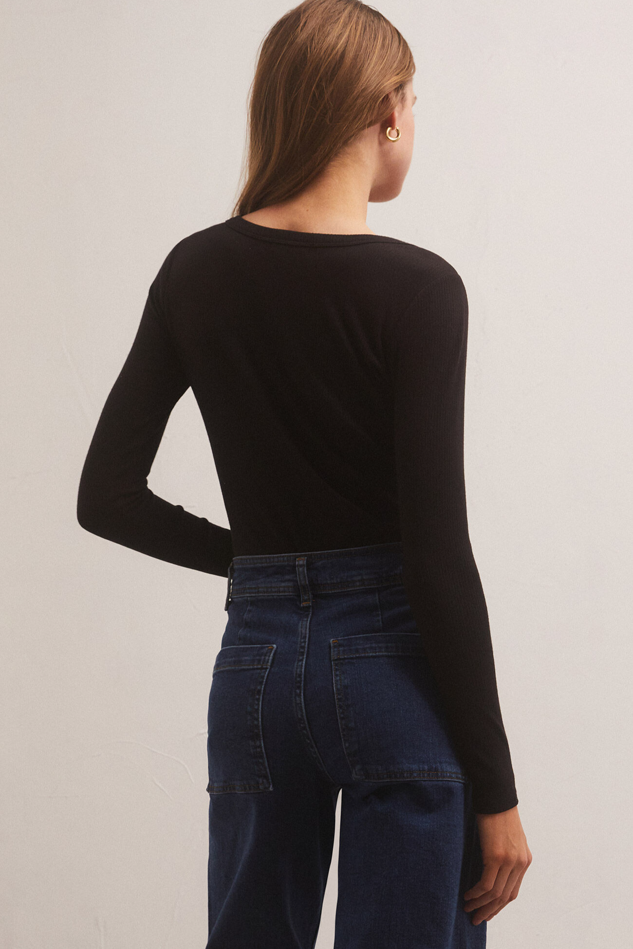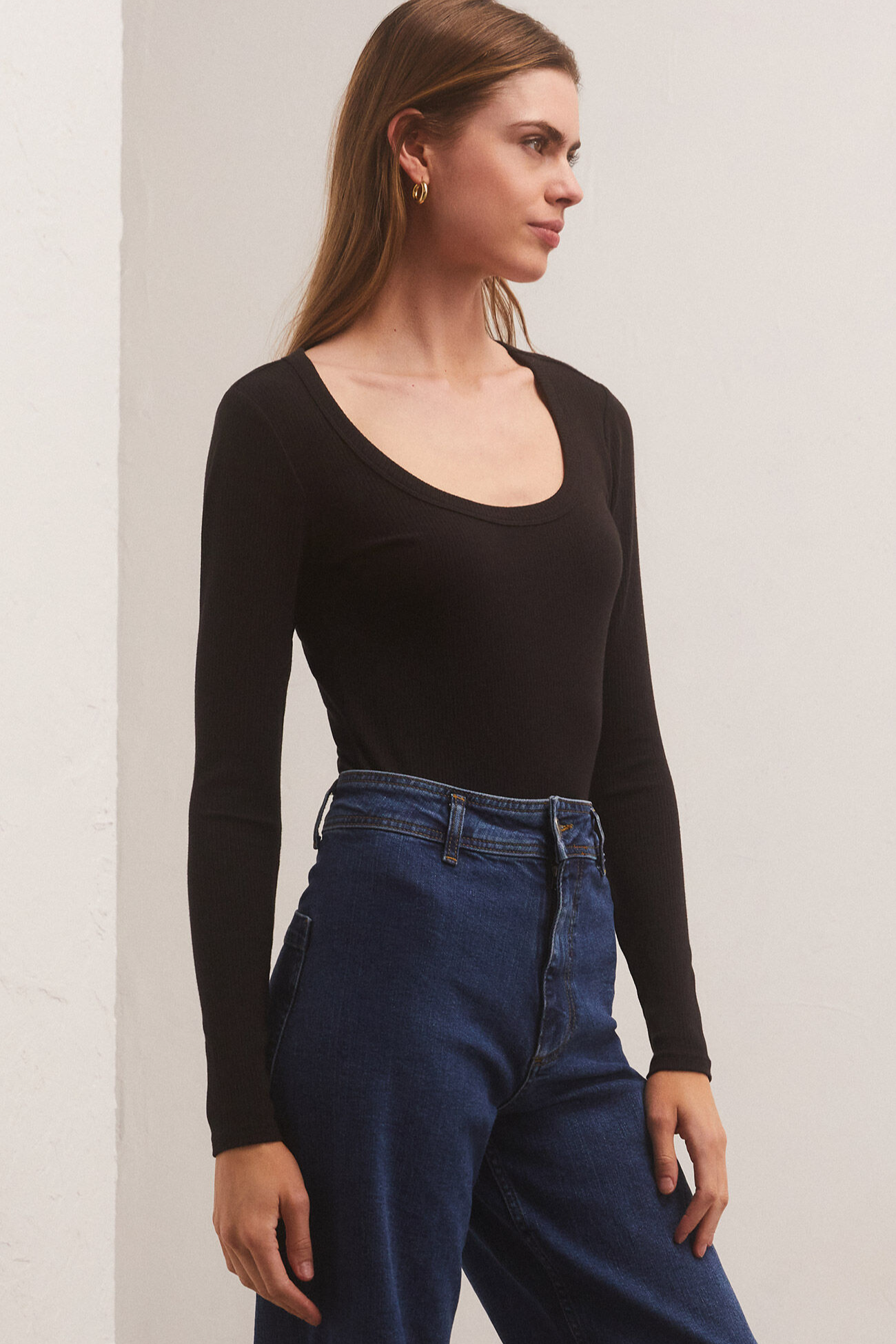 Say hello to our newest bodysuit, the Lilah Long Sleeve Rib Bodysuit. Made using our Structured Rib fabric, this fitted one-piece features a flattering scoop neckline with self binding and snap closure at the crotch. Fabric Content: 95% Rayon 5% Elastane