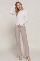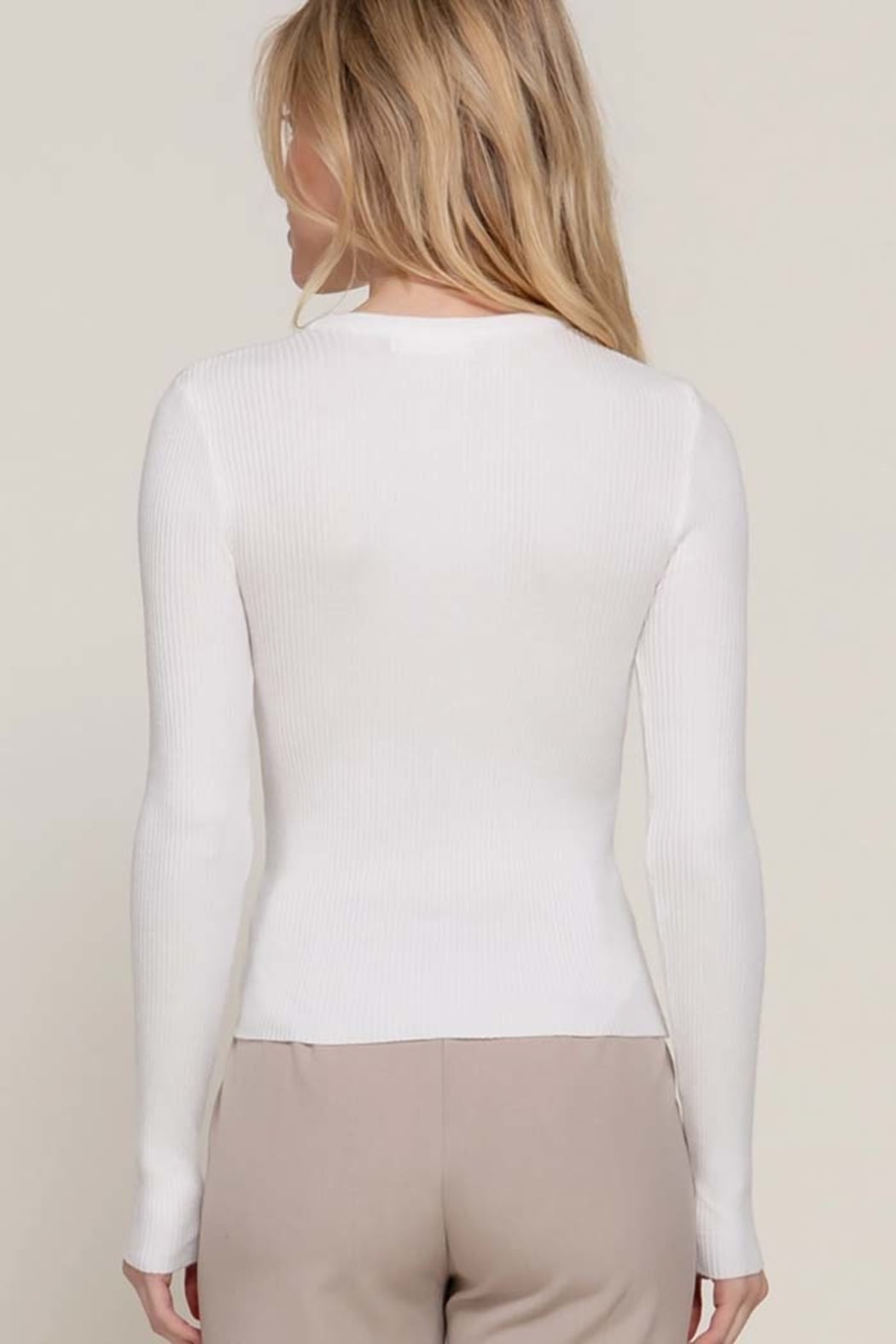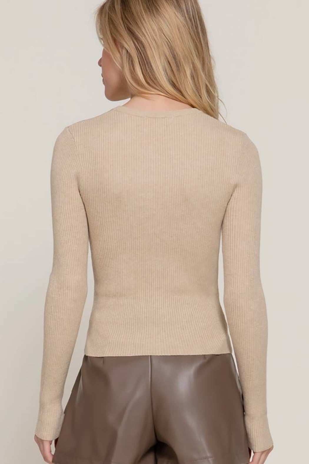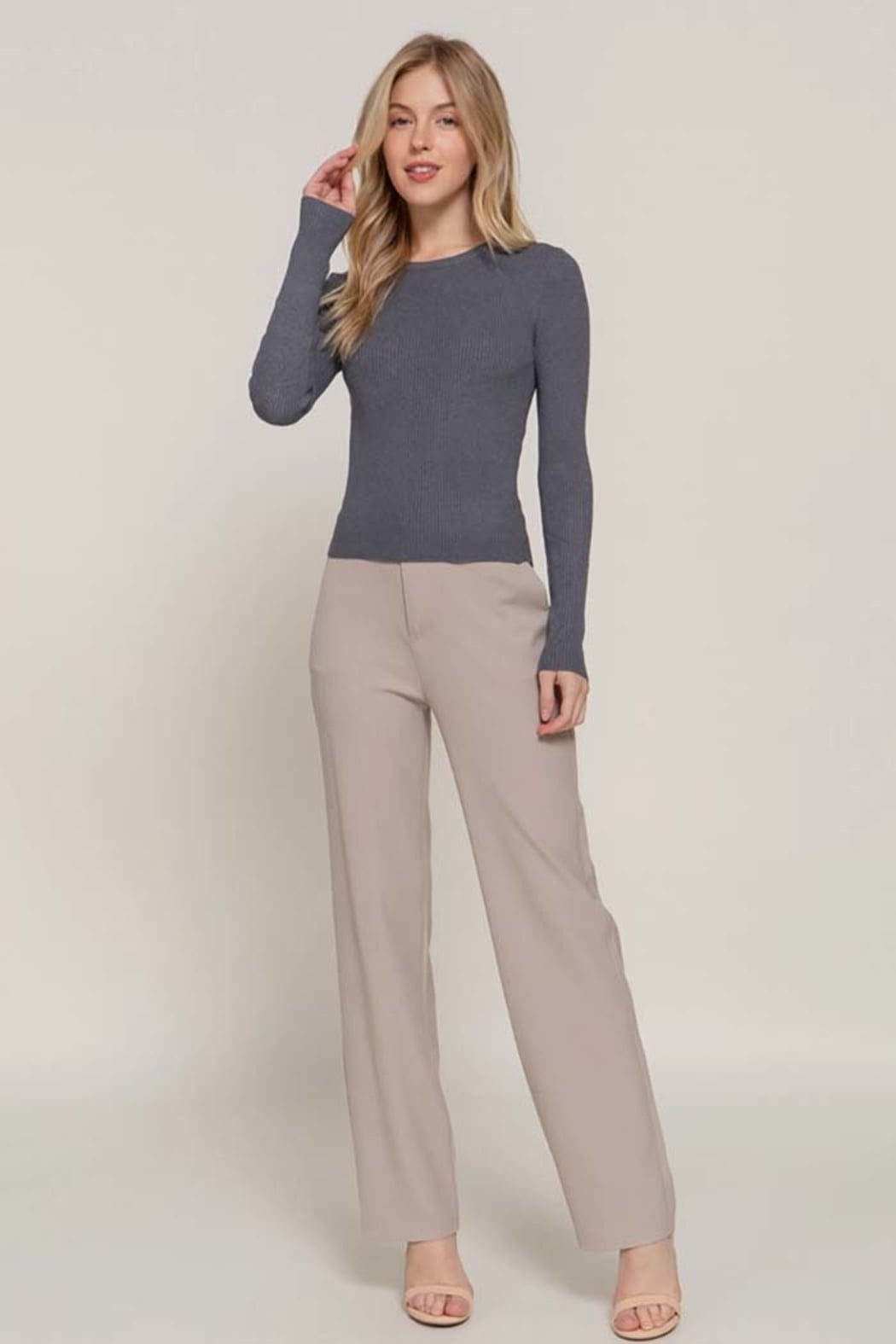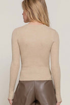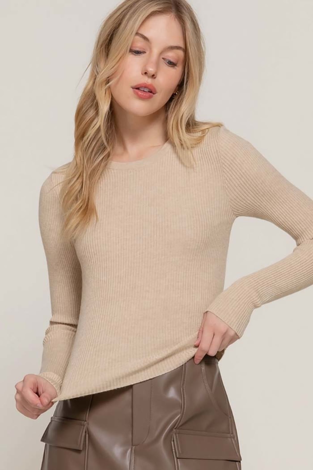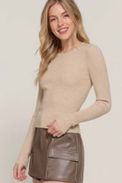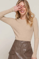 Long Sleeve Rib Viscose Sweater Slip into effortless elegance with this ultra-soft ribbed sweater, designed to contour beautifully while keeping you comfortable all day. Its clean, minimal silhouette makes it the perfect wear-with-anything essential — from polished office looks to cozy everyday styling. Details Soft rib-knit texture with a smooth, body-flattering fit Classic crew neckline for timeless styling Long sleeves with natural stretch for ease and comfort Lightweight yet warm — perfect for layering Versatile essential for fall & winter wardrobes Fabric & Care 49% Viscose, 28% Polyester, 23% Nylon Hand wash cold, hang dry Model Info Model is wearing a size S. rib knit sweater, viscose sweater, long sleeve top, fall winter basics, essential knitwear, everyday sweater, women’s boutique tops, layering tops, minimal style sweater, active basic, Active USA style
