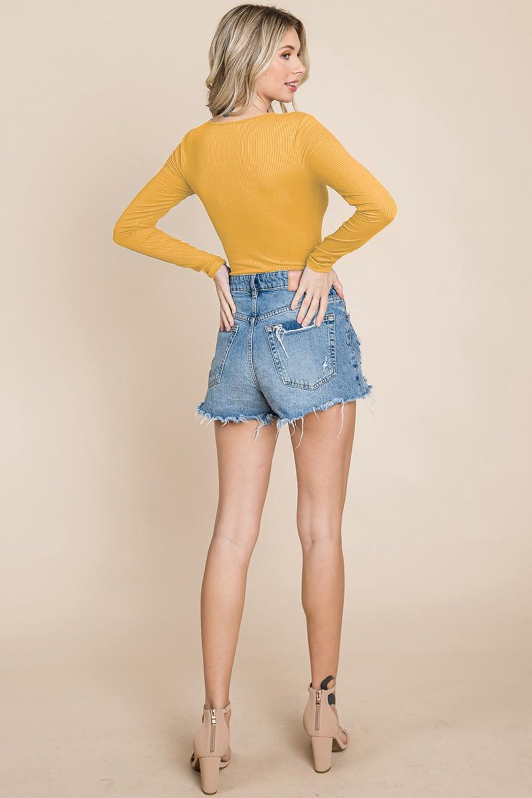 Long Sleeve Scoop Neck Ribbed Knit Henley Bodysuit