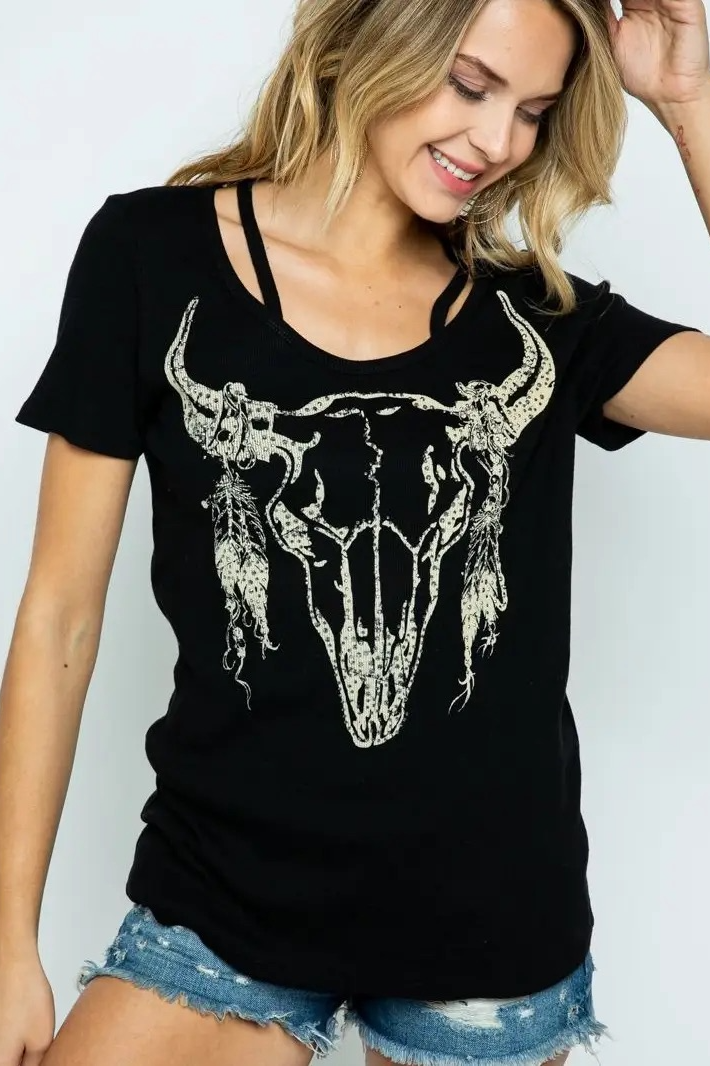 This edgy tee is super fun for any country concert or just because western style is the #1 trend right now. It does have rhinestone detail in the logo.