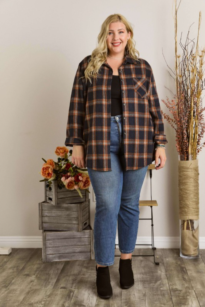 PLUS SIZE LONG SLEEVES BUTTON DOWN FLANNEL SHIRT