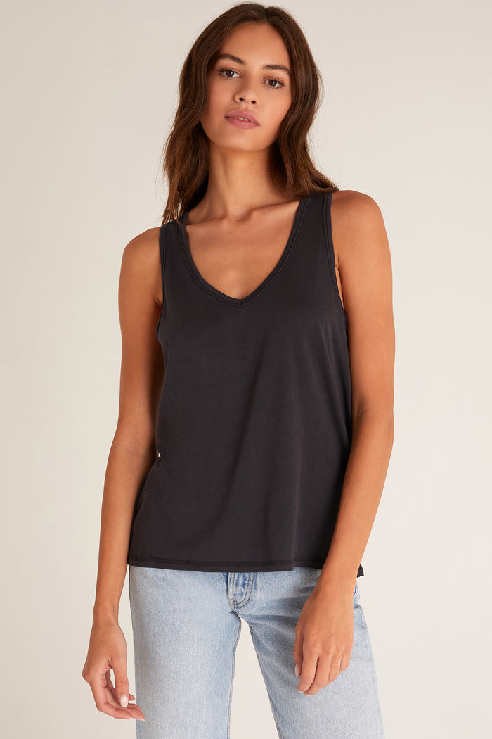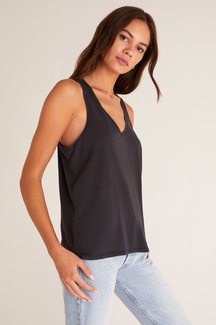 Organic V-Neck Tank Z Supply ZT222242 Our organic styles are back for another season, and the Organic V-Neck Tank continues to be a bestseller. With its relaxed body and flattering v-neck design, this 100% organic cotton tank is a staple she can layer all season. Available in White (slightly sheer), Silver Pink, and Washed Black. Fabric Content: 100% Organic Cotton