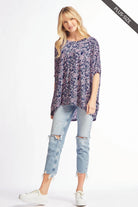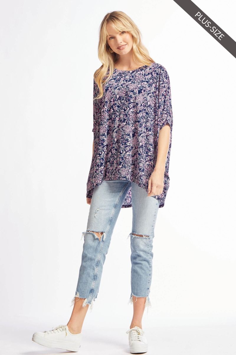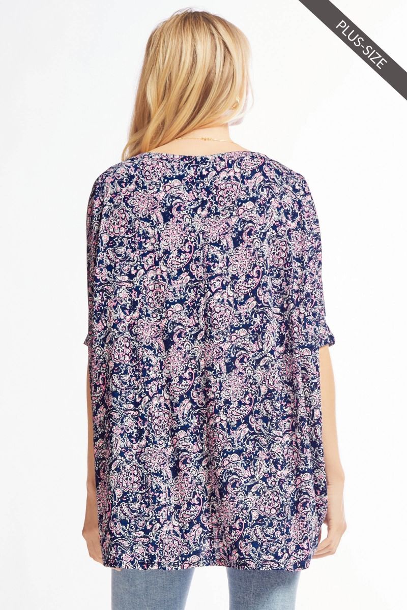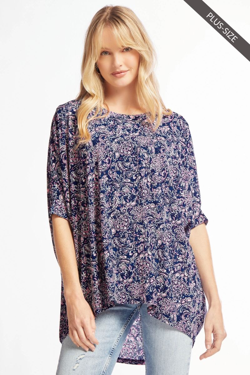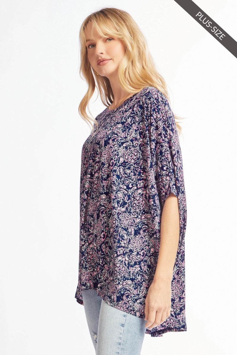 This is a perfect paisley print dolman sleeve top. It is made of a cool, wrinkle free top. The body of this top is supposed to be very loose and relaxed. It is very travel friendly as well.