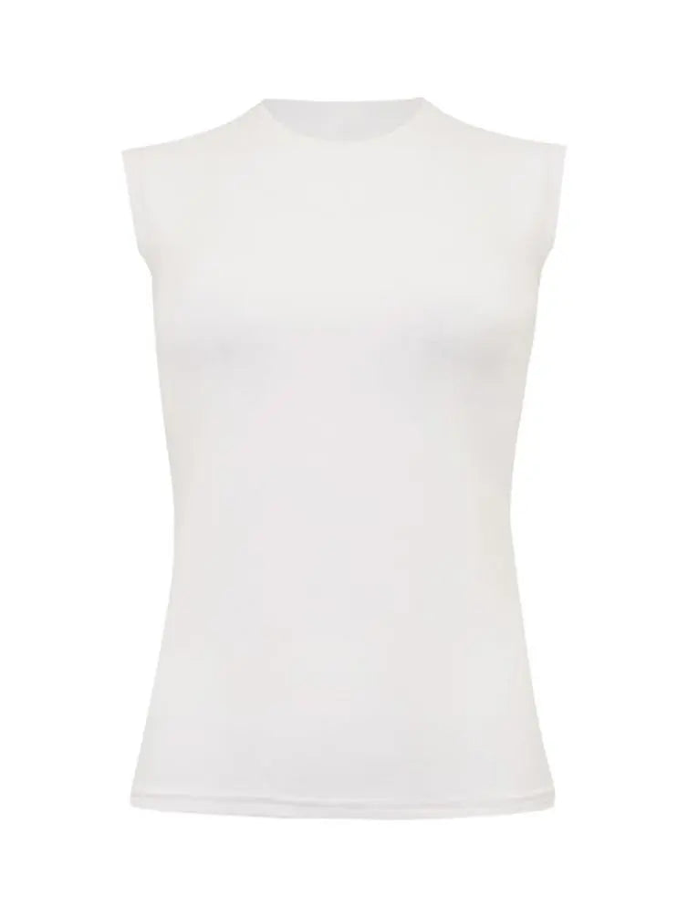Cotton, sleeveless crewneck top.