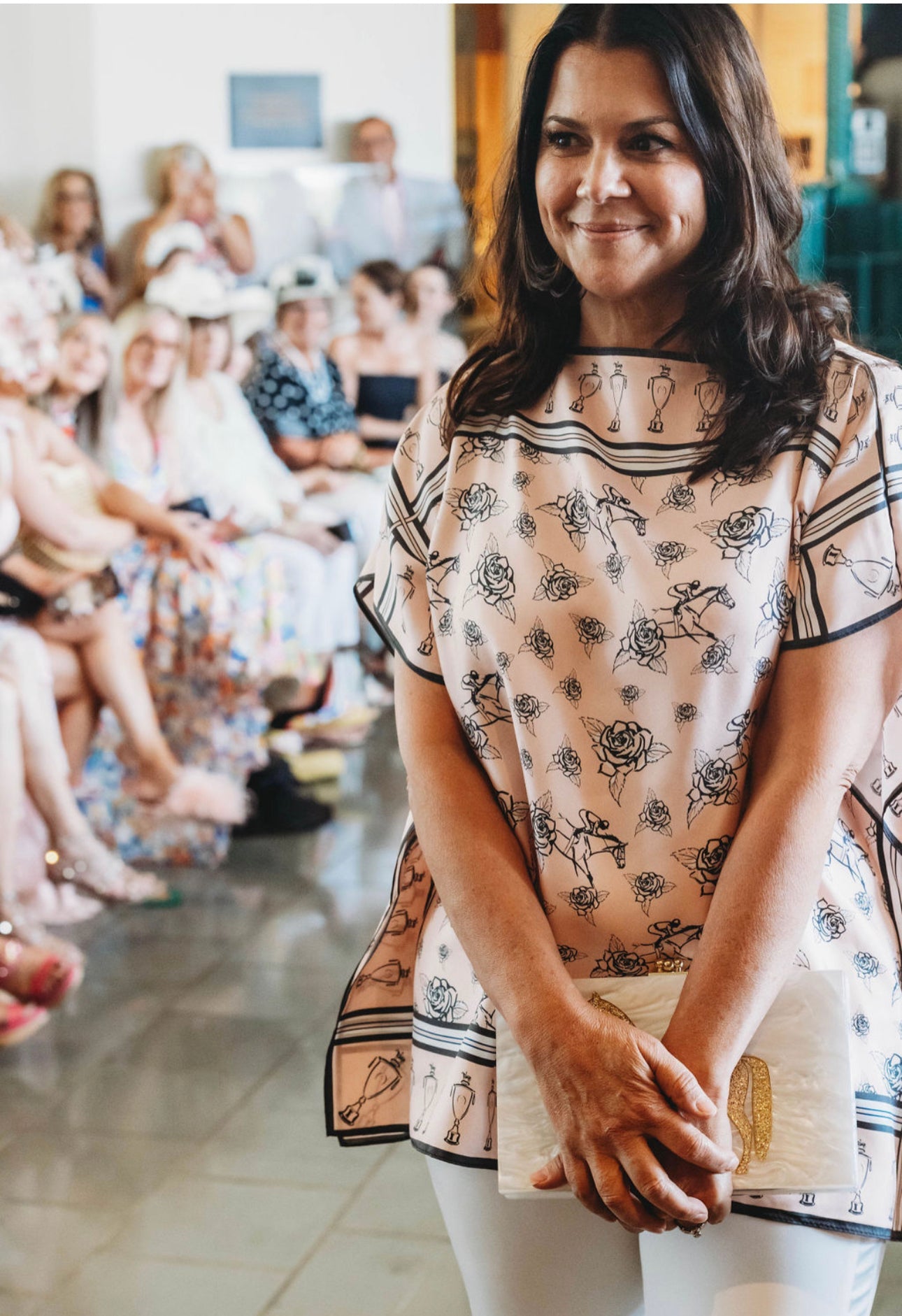 This poncho top comes in one size and features a charming Racing & Roses print, complete with trophy accents along the border. It's made from 100% Polyester for a comfortable fit.