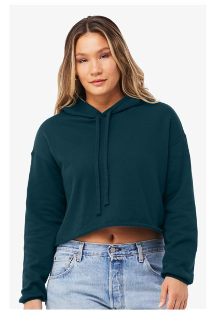 This sweatshirt hits at the waist not really cropped.