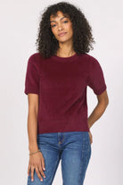 Susie short sleeve crew neck top crafted from a soft blend of fuzzy yarns. This comfortable classic fit with its lightweight design, making it a versatile addition to any wardrobe. Perfect for layering or wearing on its own, it's the ideal choice for a polished yet chic style. Body length from HPS: 22", Sleeve length: 10", Bust: 36" (Size Small) -58% NYLON 27% VISCOSE -Hand wash cold, Reshape dry flat -Imported