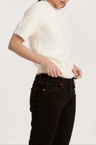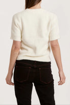 Susie short sleeve crew neck top crafted from a soft blend of fuzzy yarns. This comfortable classic fit with its lightweight design, making it a versatile addition to any wardrobe. Perfect for layering or wearing on its own, it's the ideal choice for a polished yet chic style.