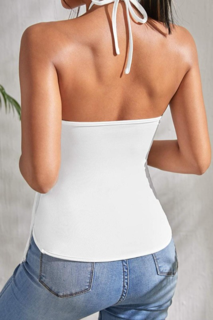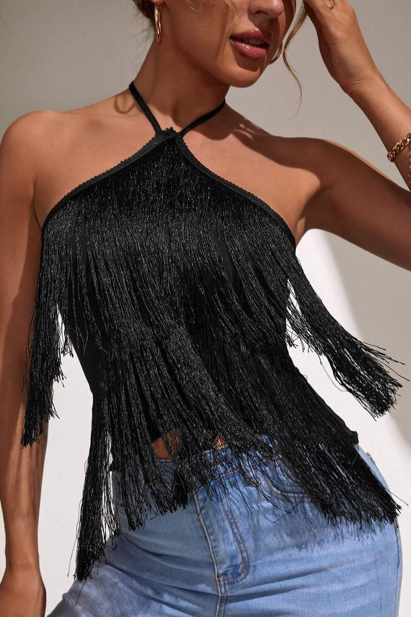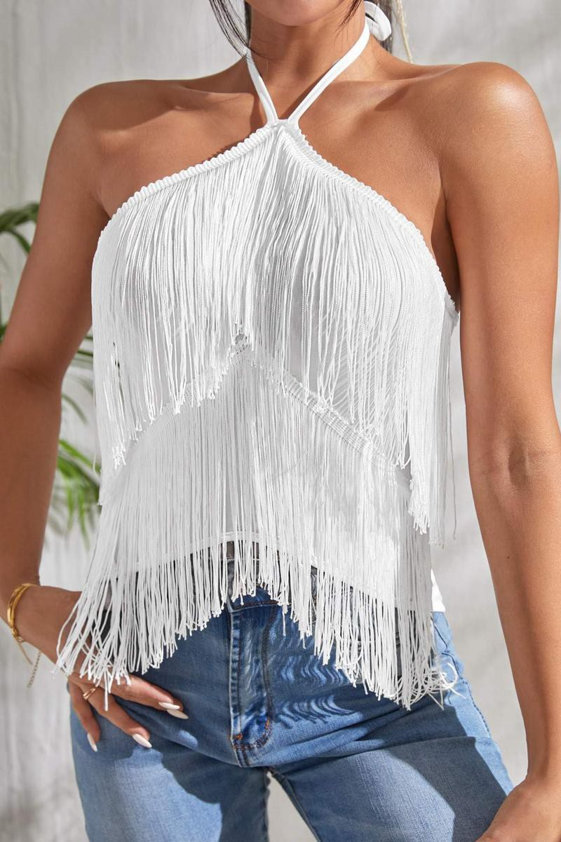 Fringe halter back top Style: Boho