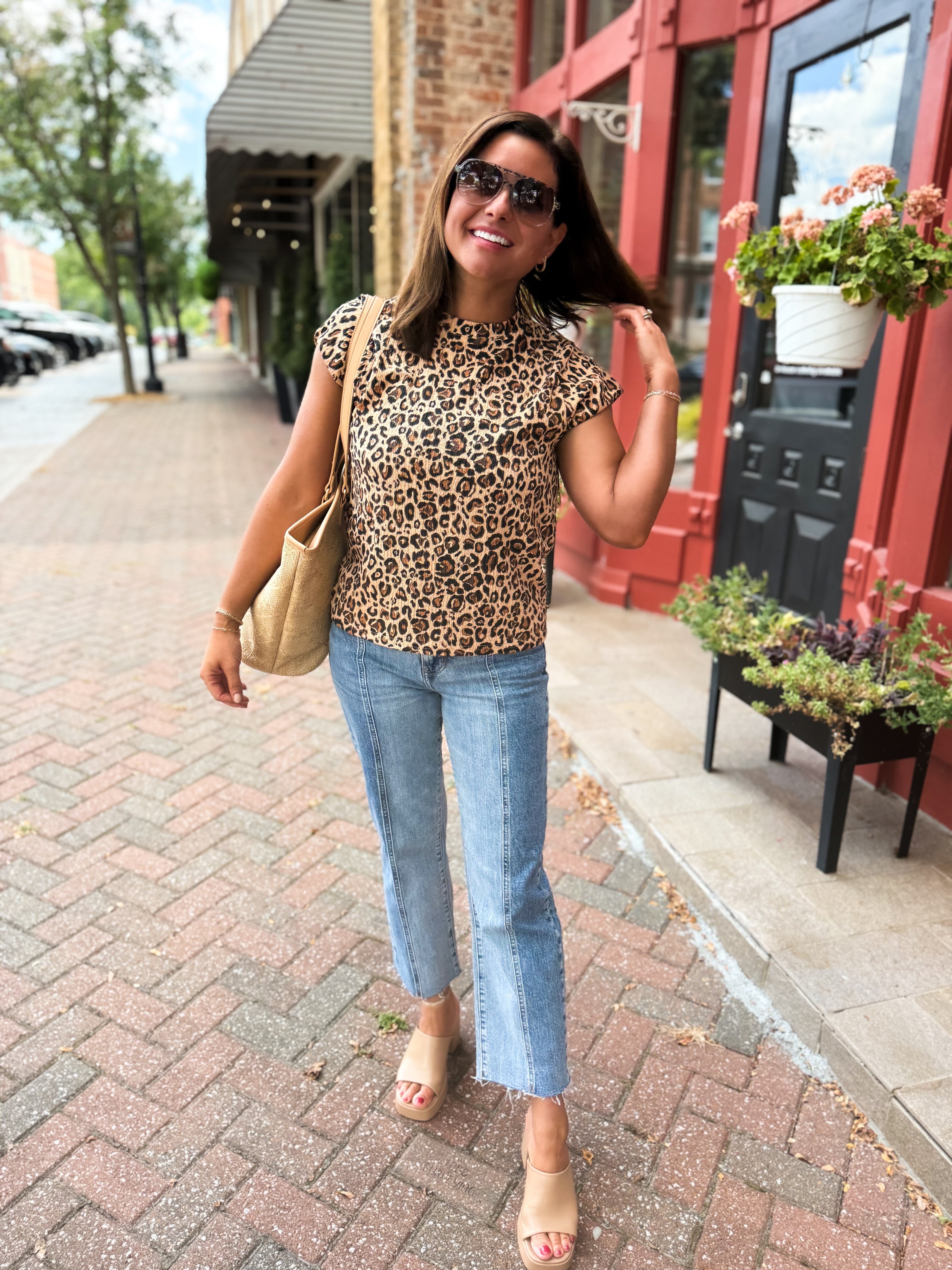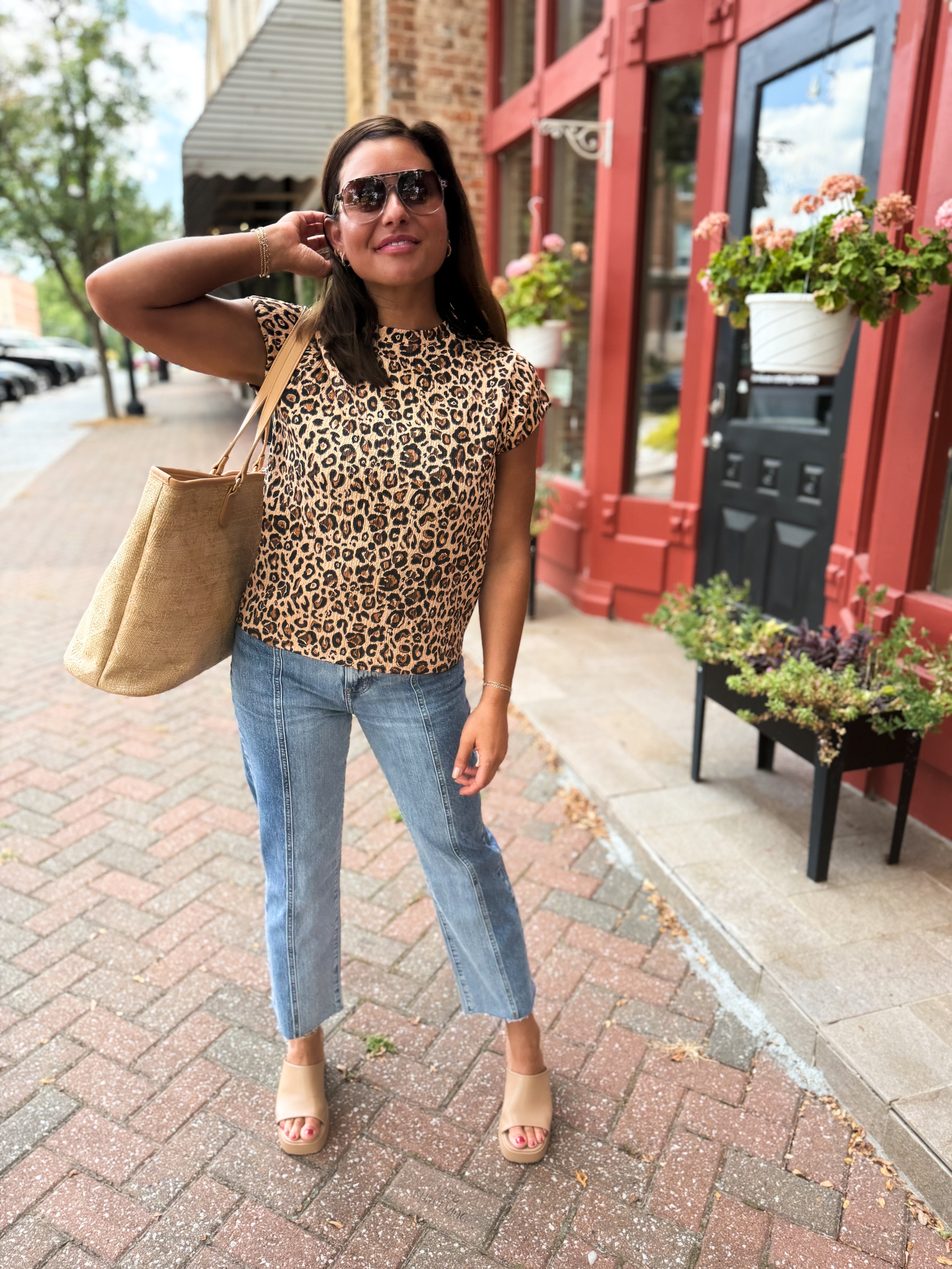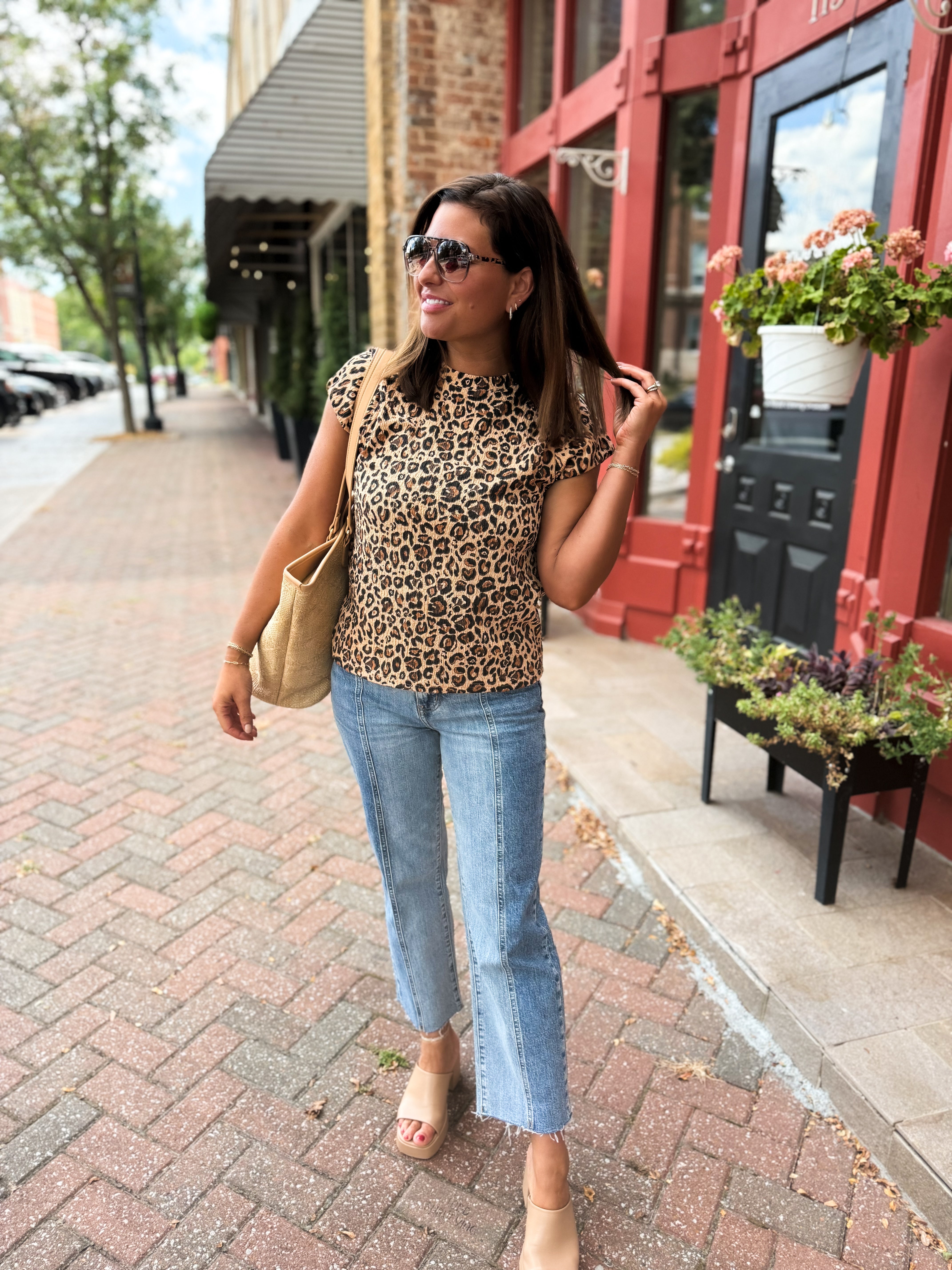 Unleash your wild side with the Wild Instinct Tee! This playful pullover features a leopard pattern textured knit and flattering cap sleeves, making it perfect for adding a fun, fierce touch to any outfit. Comfortable and stylish, it’s your go-to top for effortless chic.