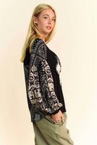 boho top, patchwork blouse, floral pullover, mixed print fashion, boutique top, casual knit, relaxed fit sweater, Nadya’s Closet