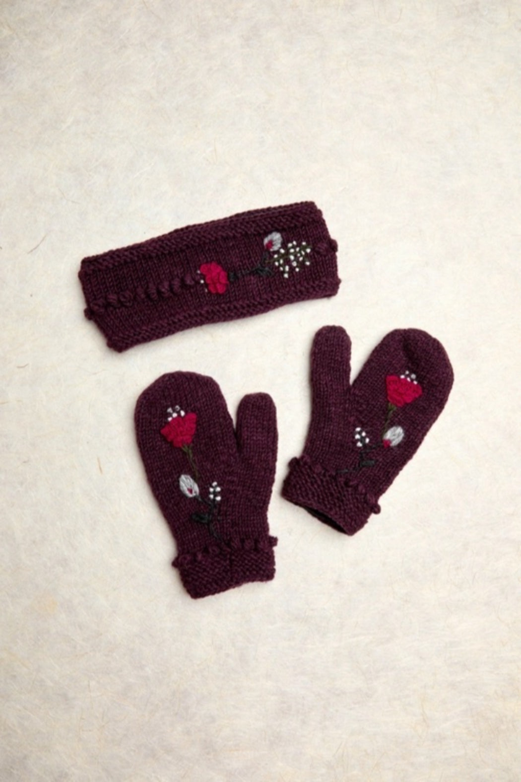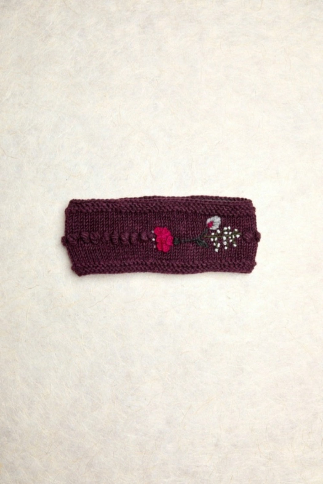 Meet the Therese Deep Plum Headband, a beautifully moody piece from our Dark Forest Collection. Hand-knit in a rich plum hue and adorned with delicate floral embroidery, this fleece-lined headband offers warmth with a quietly elegant edge. Popcorn stitch details add texture and charm—making it the perfect finishing touch for crisp days, cozy layers, and winter wanderings. Pair with Therese Deep Plum Hand Warmers Made In Nepal