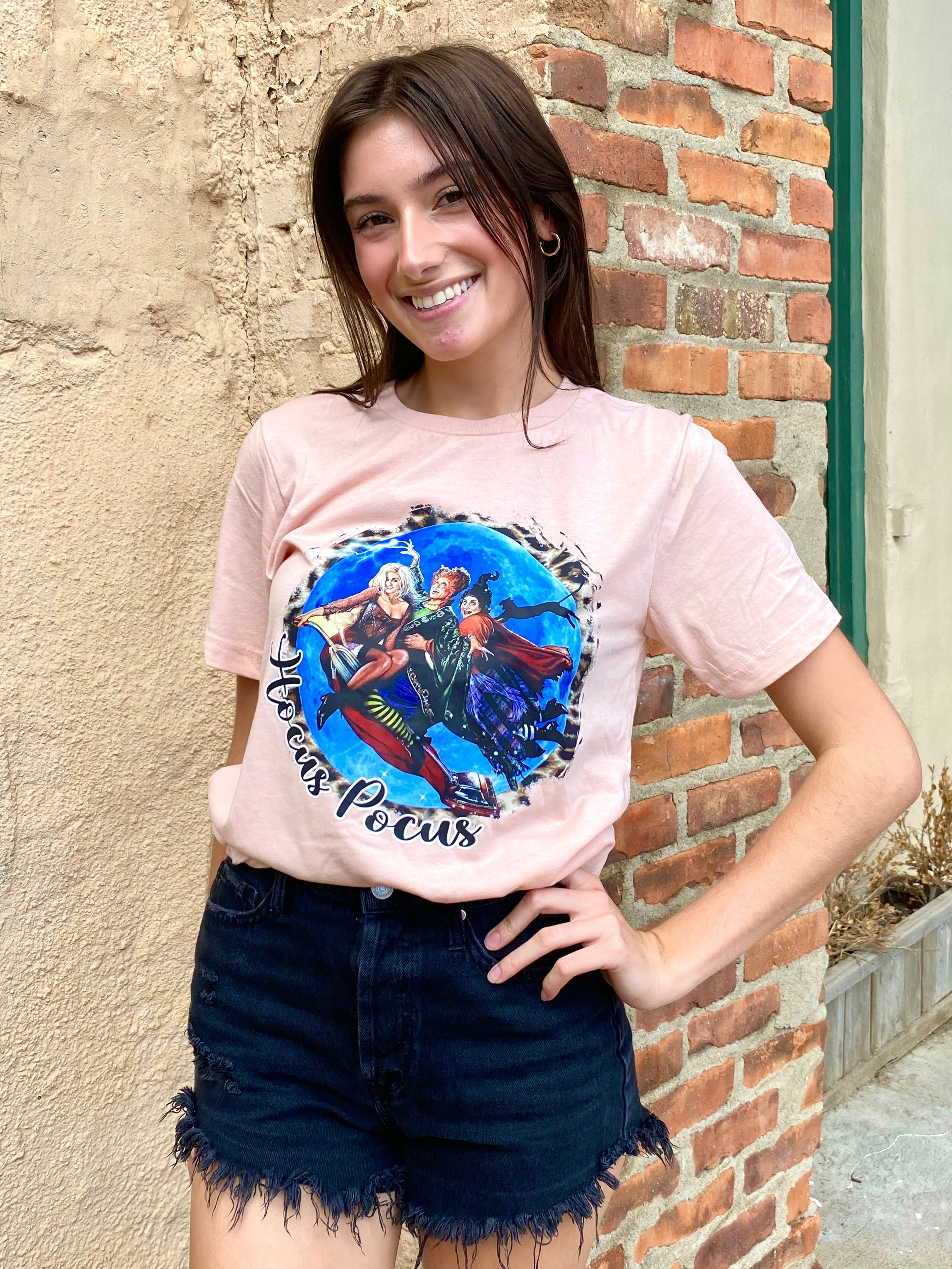 Hocus Pocus Peach Leopard Graphic T-Shirt