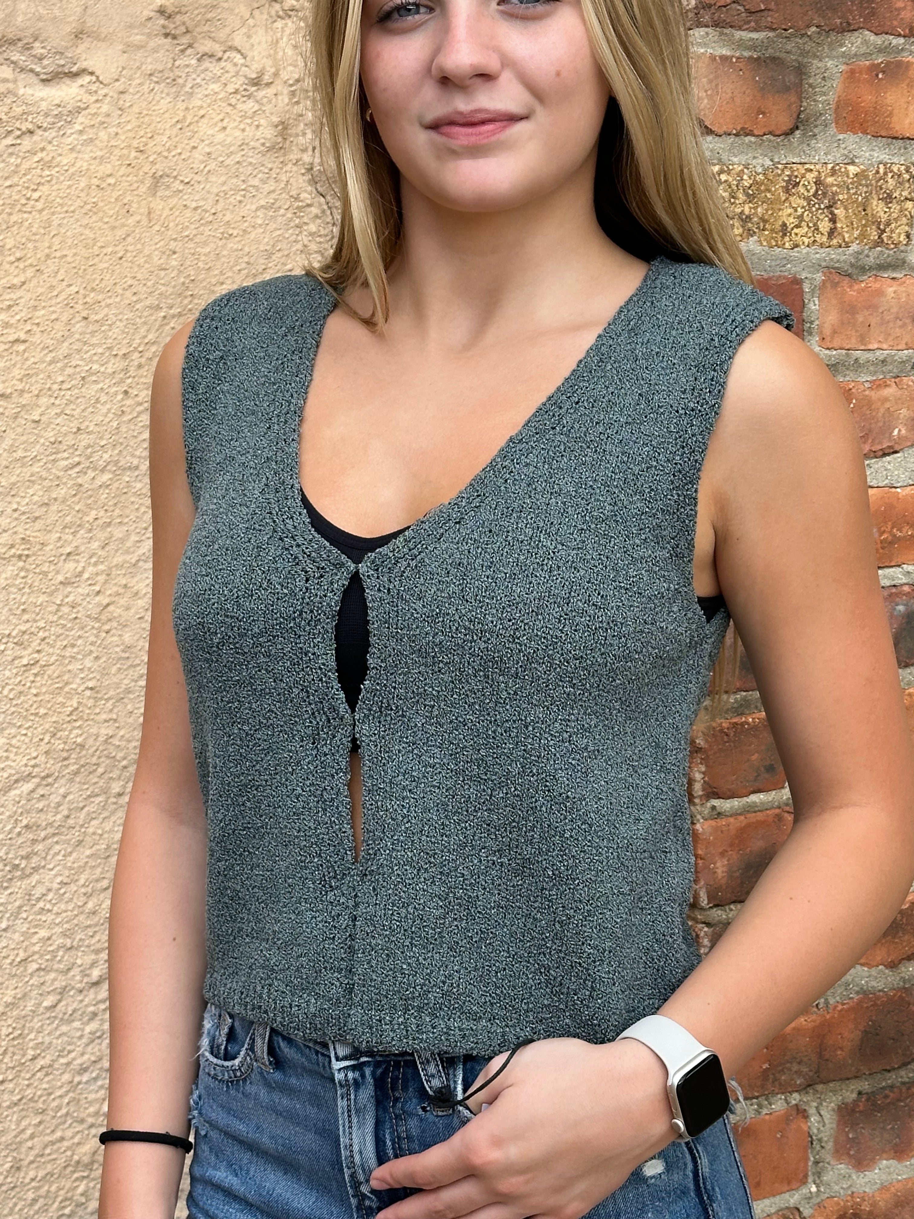 Be bold and versatile with the Holli Hook & Eye Sweater Vest! This trendy crop length piece can be worn solo or paired with a top for added style. Don't just follow trends, set them with this unique and playful sweater vest!