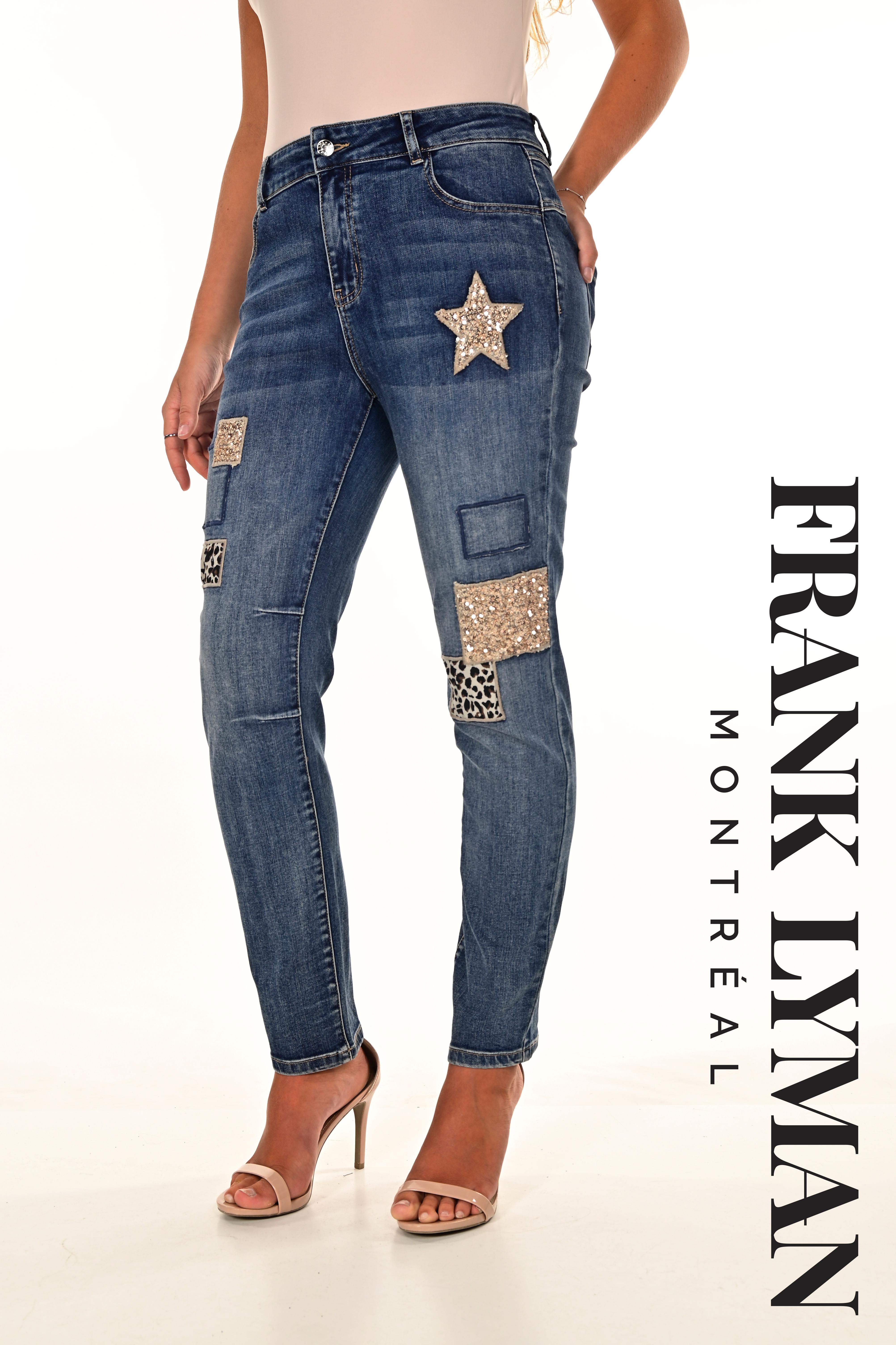 Elevate your denim game this winter with the fabulous Frank Lyman Jeans (Style 234146U). Crafted in a stunning blue hue and adorned with eye-catching embellishments, these jeans are designed to turn heads while providing unmatched comfort.