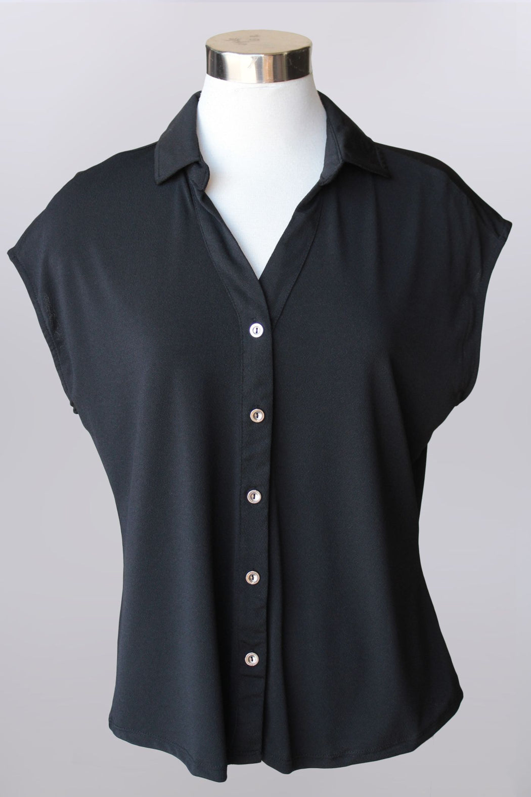 cap sleeve collared button front top