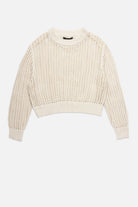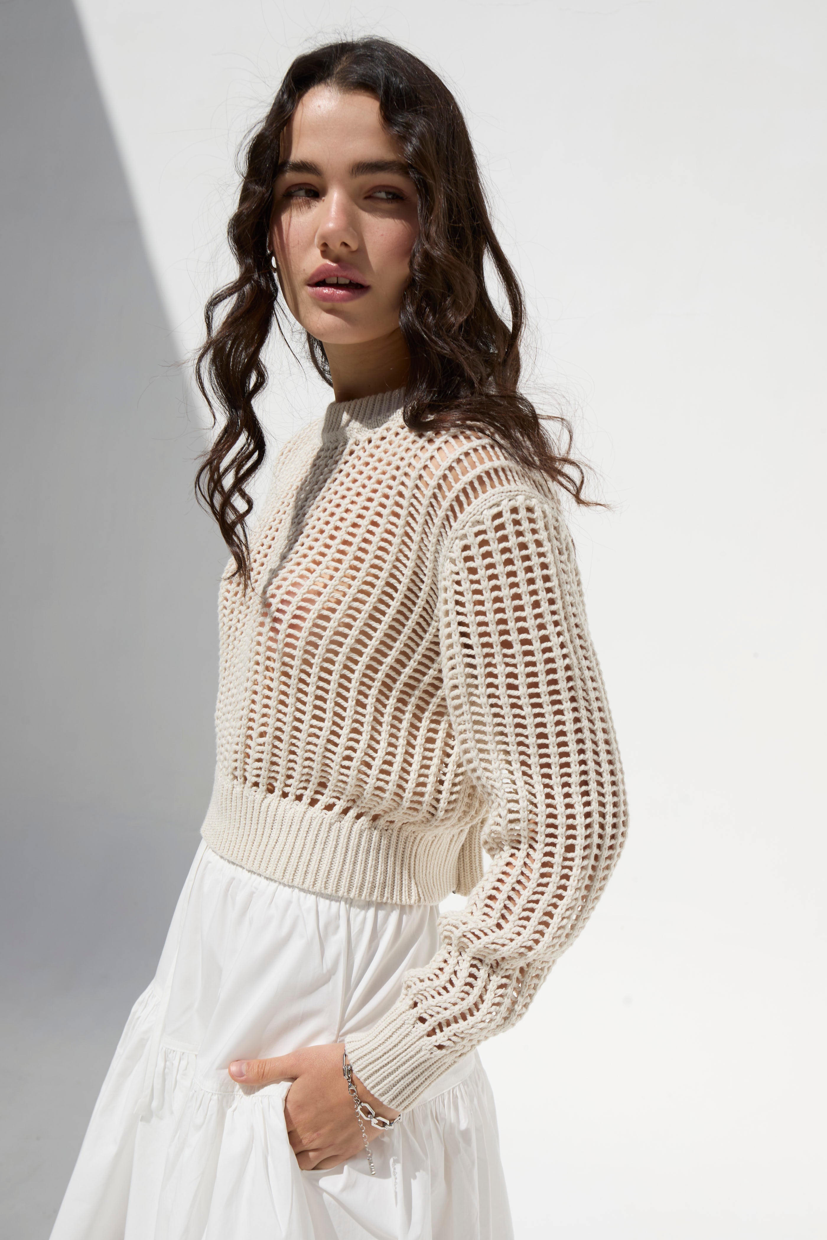 Cotton blend sweater with round neckline with long sleeves. Ribbed cuffs. Openwork knit.