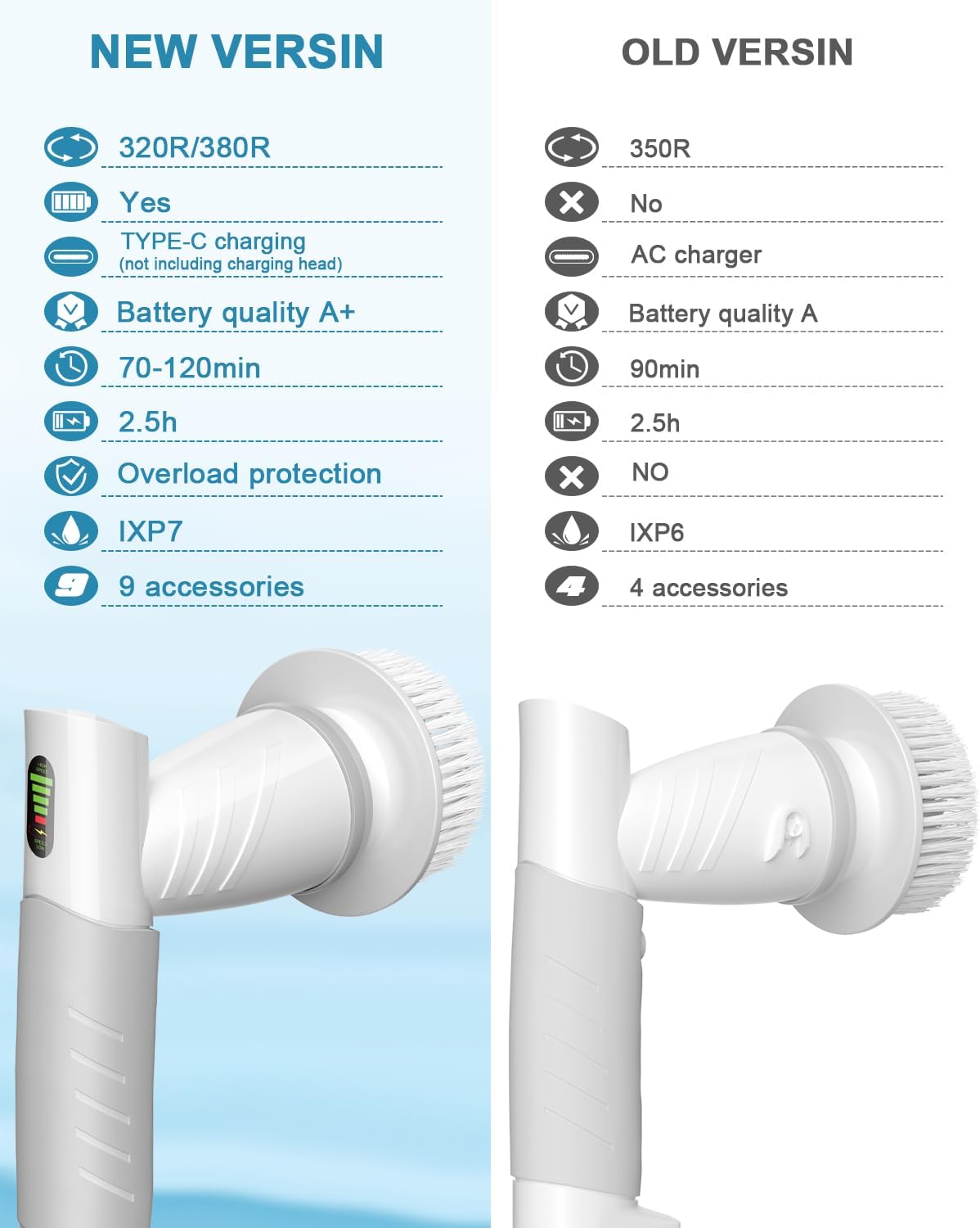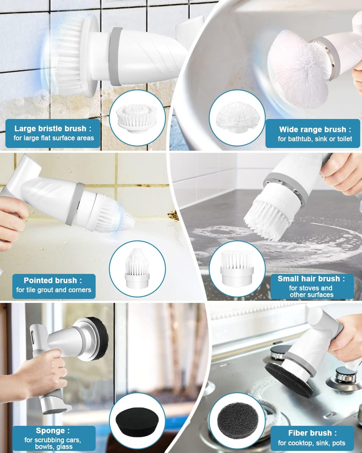 • 🧹【9 Replaceable Cleaning Heads】: It also comes with 9 replaceable cleaning heads, allowing you to clean with precision and efficiency. It is perfect for deep cleaning hard-to-reach corners and crevices, and its powerful spinning action will instantly remove dirt, grime, and stubborn stains.