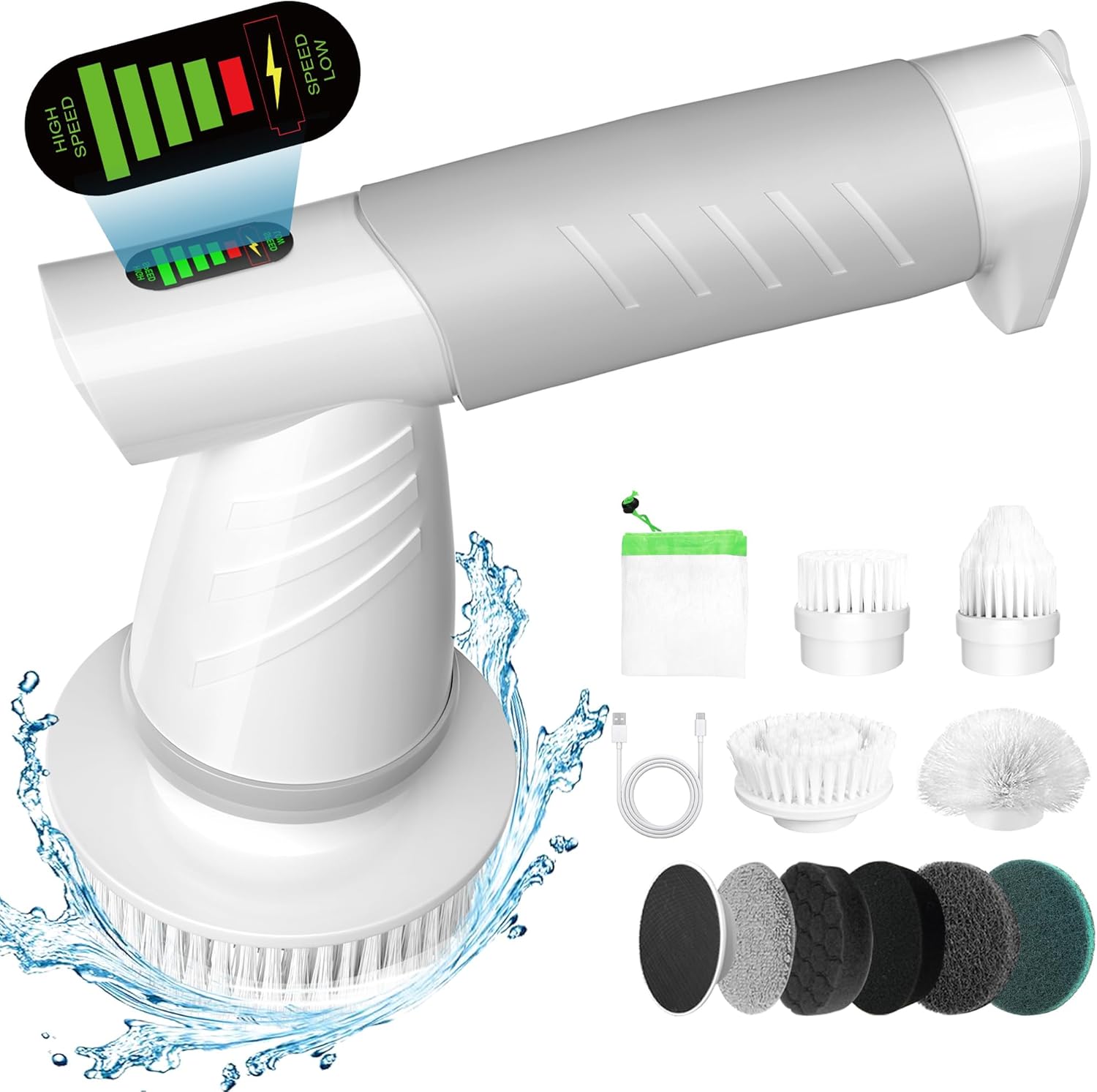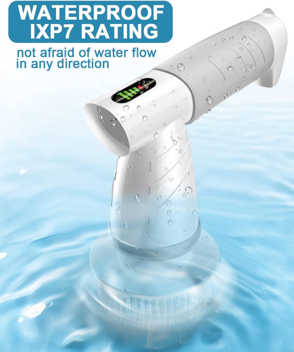 • ⚡【New Upgrade & Powerful】: This scrubber also features a 5 grid power display and overload protection for added security. which can work for up to 120 minutes and be fully charged within 2.5 hours. Able to withstand long-term use and is not easy to damage.