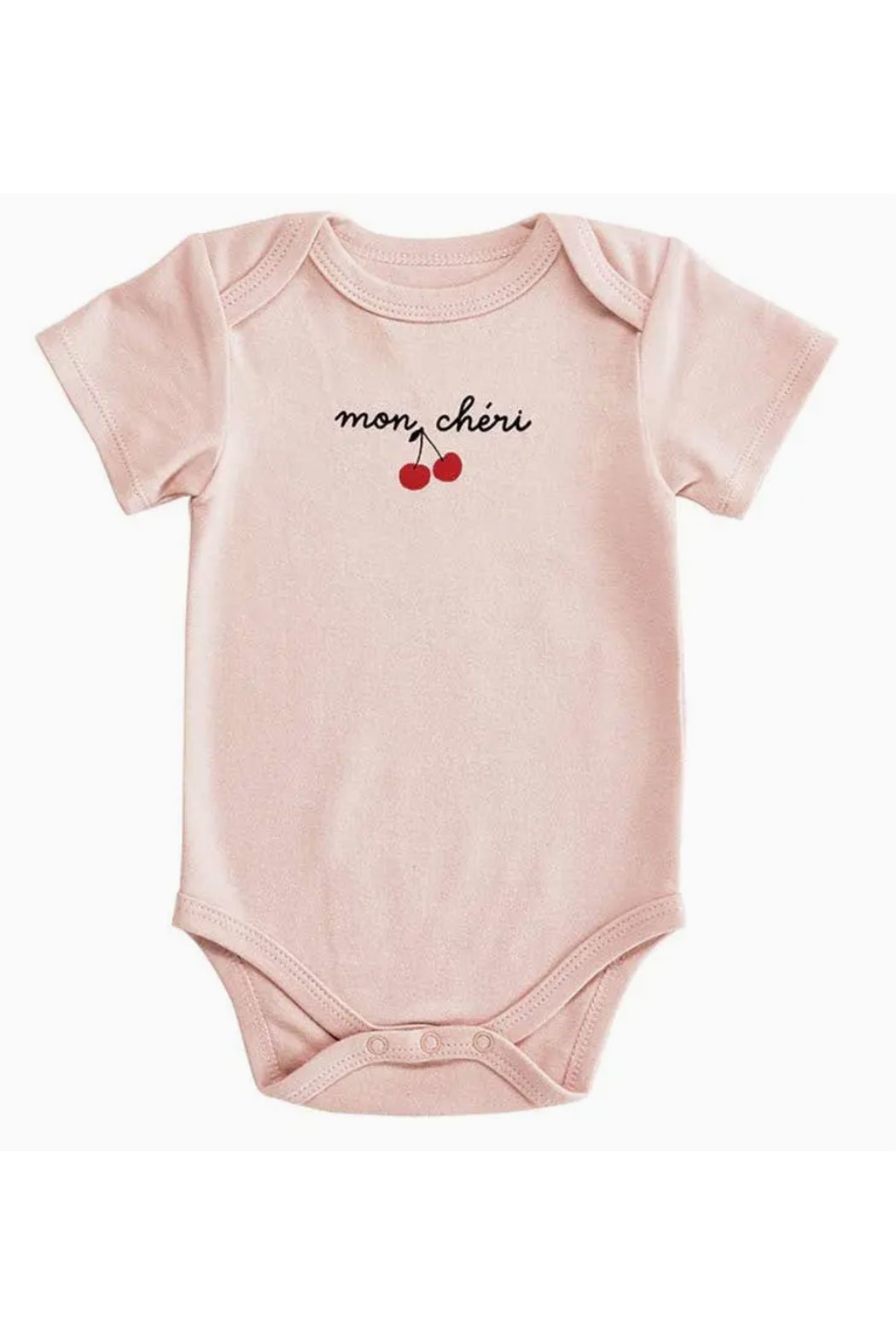 Add a French-inspired flair to your little one's wardrobe with the sweet cherry onesie. Made of easy-care soft cotton spandex with convenient snap closures for easy diaper changes.