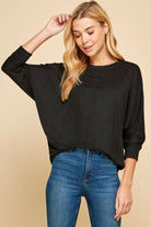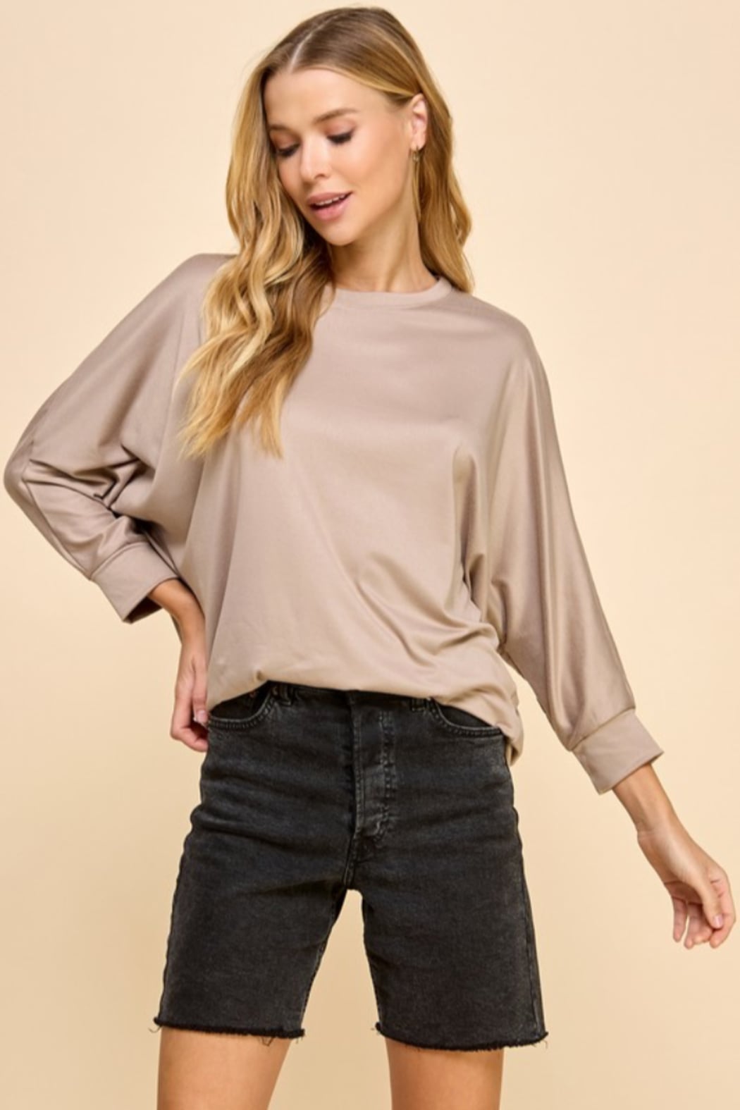 A relaxed Dolman Top with a roomy batwing silhouette and a classic crew neckline for effortless layering. The drapey, soft-feeling fabric and cuffed sleeves make it an easy everyday piece. Pair this top with jeans or tailored pants for a casual, modern look.