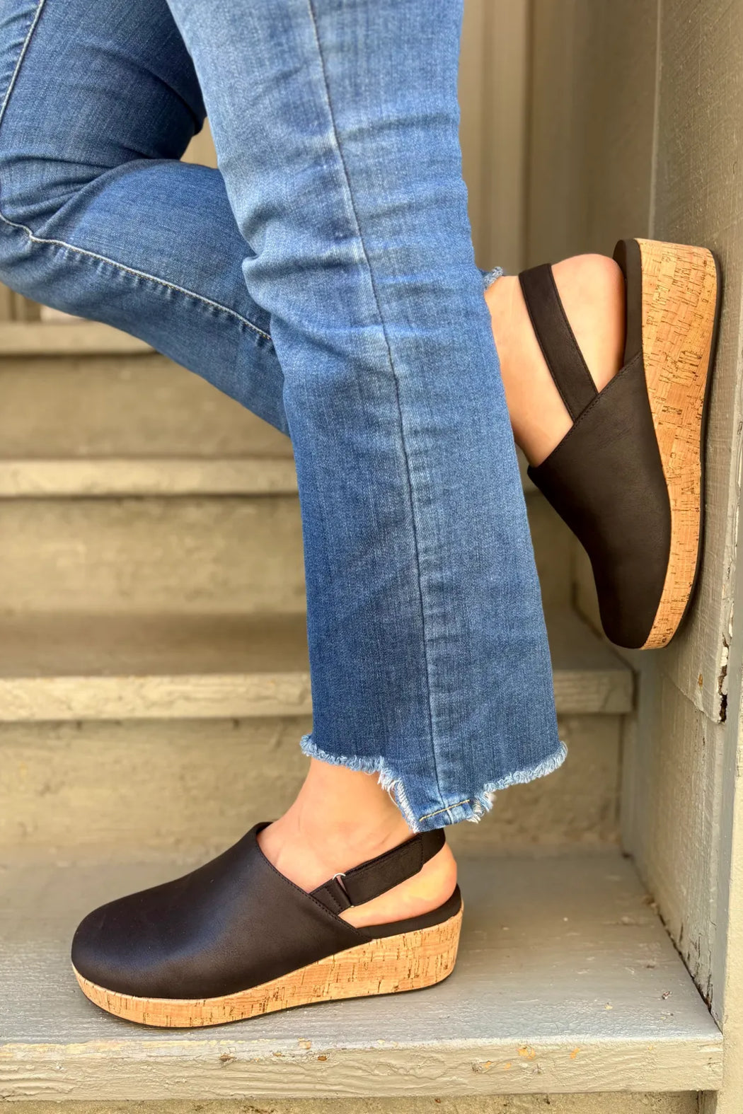 Vegan leather upper in two versatile shades * Cushioned neoprene insole for all-day comfort * Adjustable velcro ankle strap for a secure fit These Corky’s wedges bring style and comfort together effortlessly! The cork wedge adds height without sacrificing comfort, while the cushioned insole and adjustable strap make them easy to wear all day long. Style them with your favorite dresses for a feminine vibe or with cropped denim for a laid-back look. Fit: True to size. If between sizes, go with your larger size. Adjustable ankle strap customizes the fit.