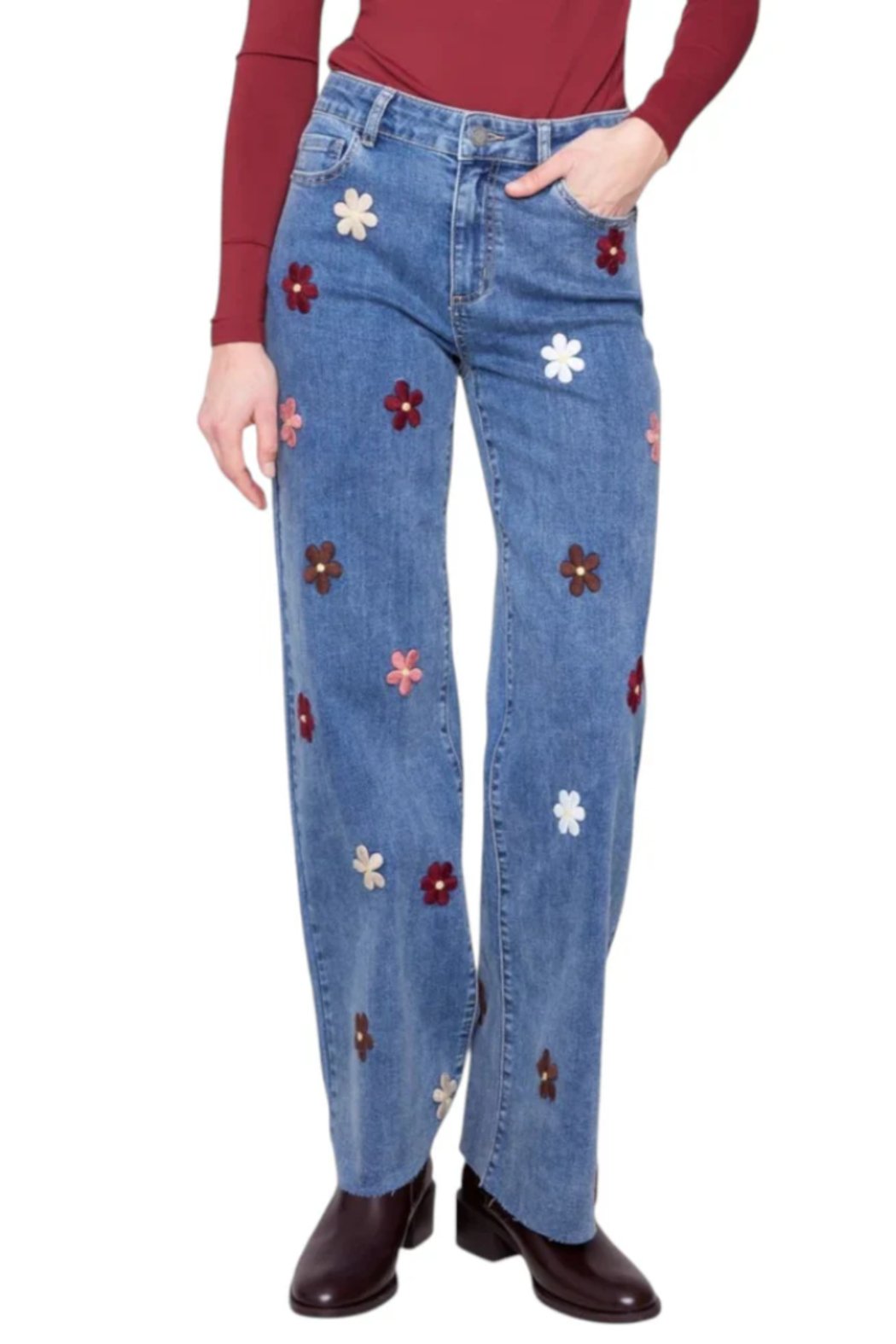 The CHARLIE B C5565 Flower Patch Wide Leg Jean combines comfort and style with its relaxed wide-leg fit and charming floral patch details. Perfect for adding a touch of personality to your everyday wardrobe, these jeans offer a flattering silhouette while ensuring ease of movement. Ideal for casual outings or creative looks, they bring a fresh, supportive vibe to your denim collection.