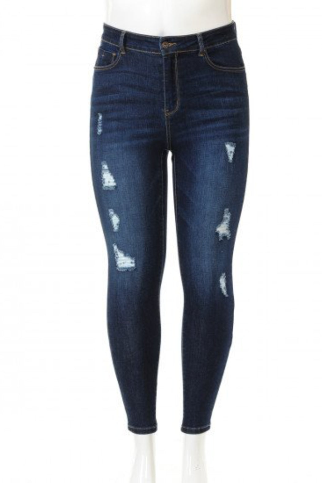 HIGH RISE 5-POCKET SKINNY WITH DESTRUCTION (STYLE 90146)
